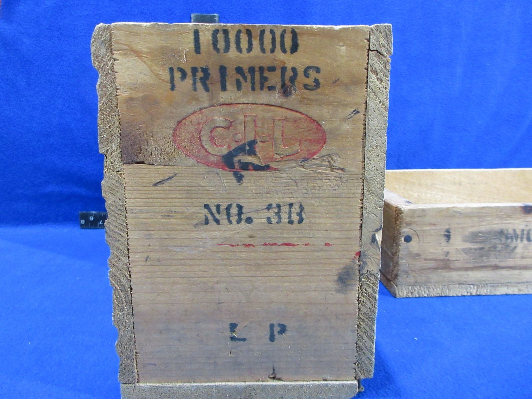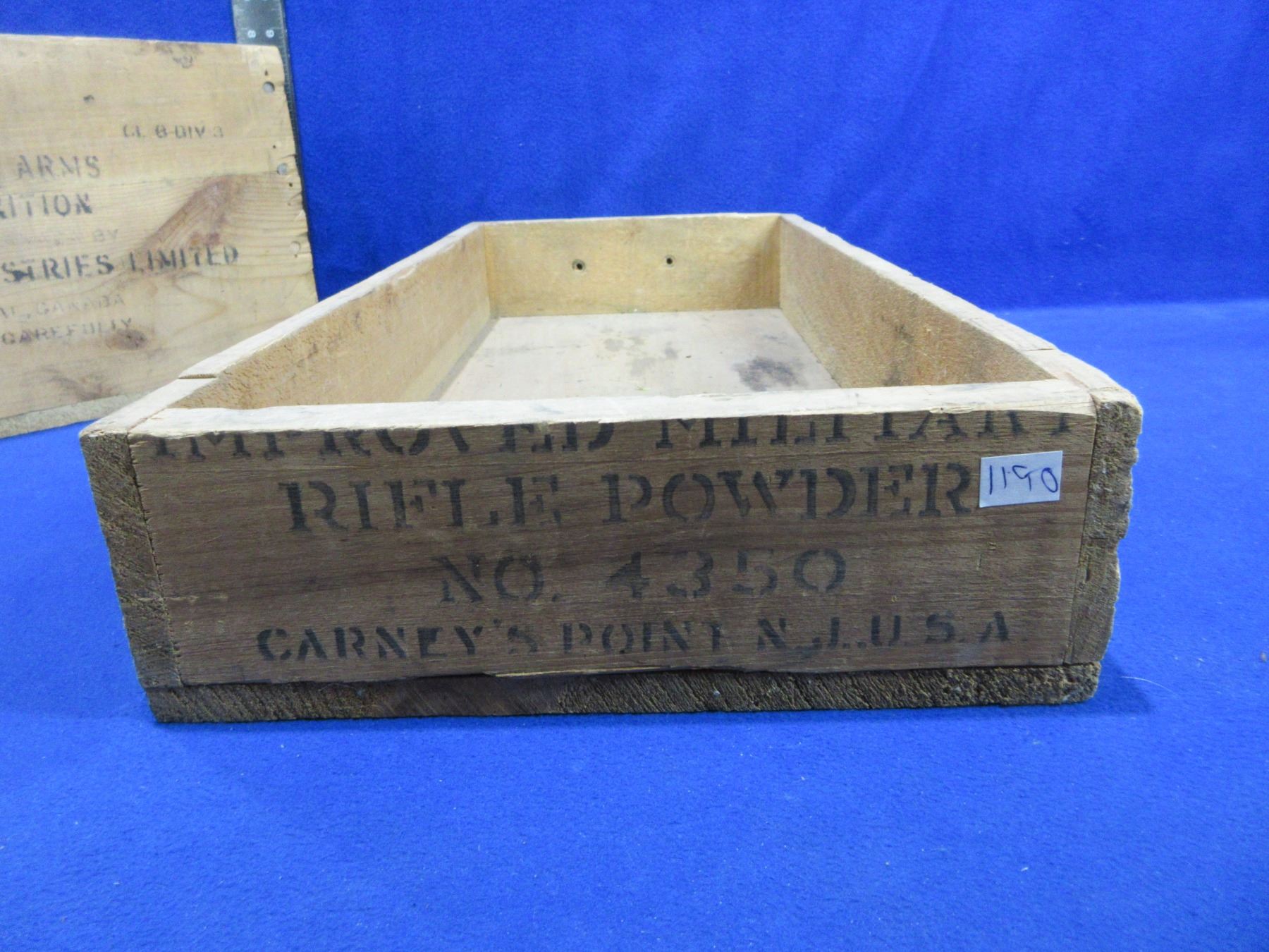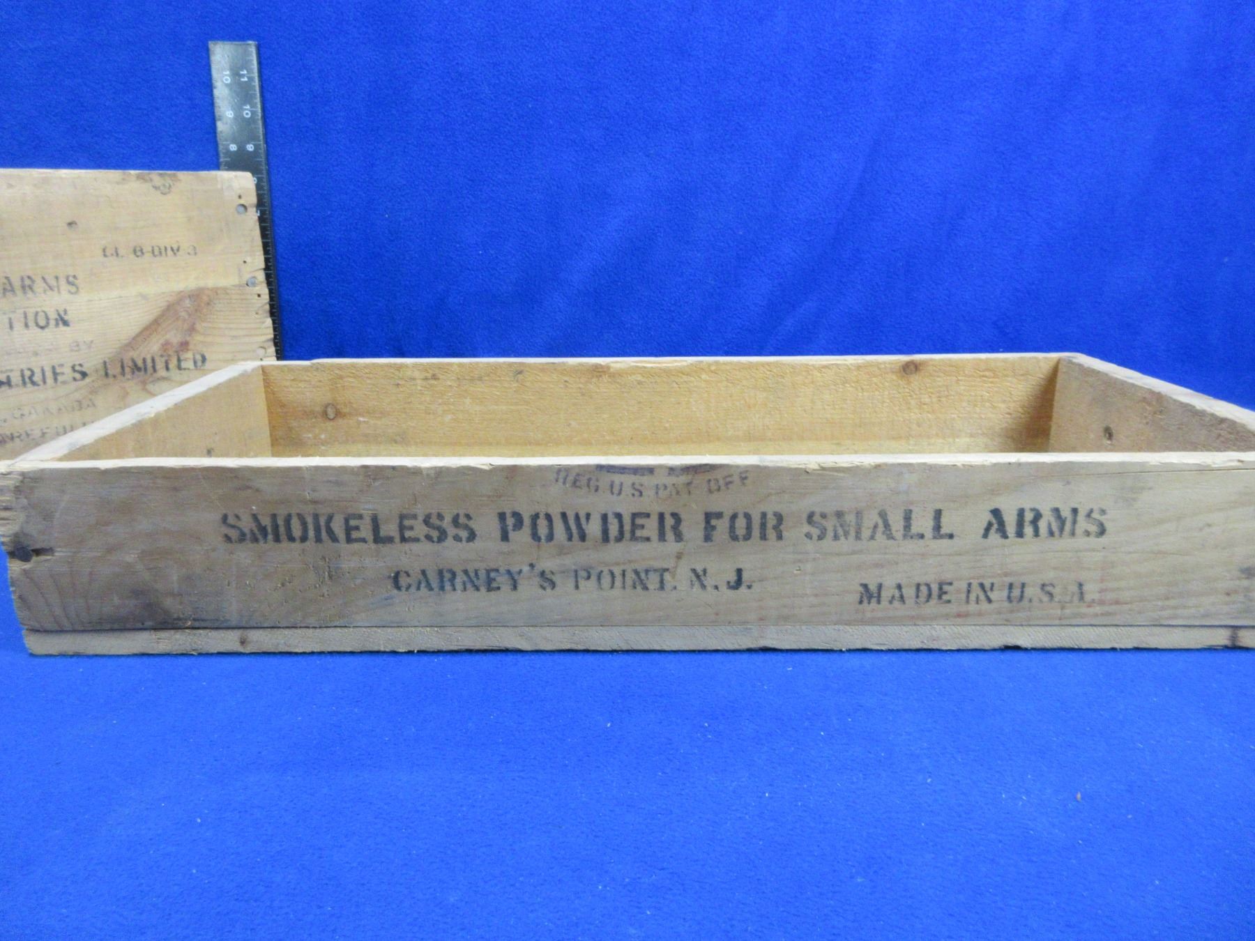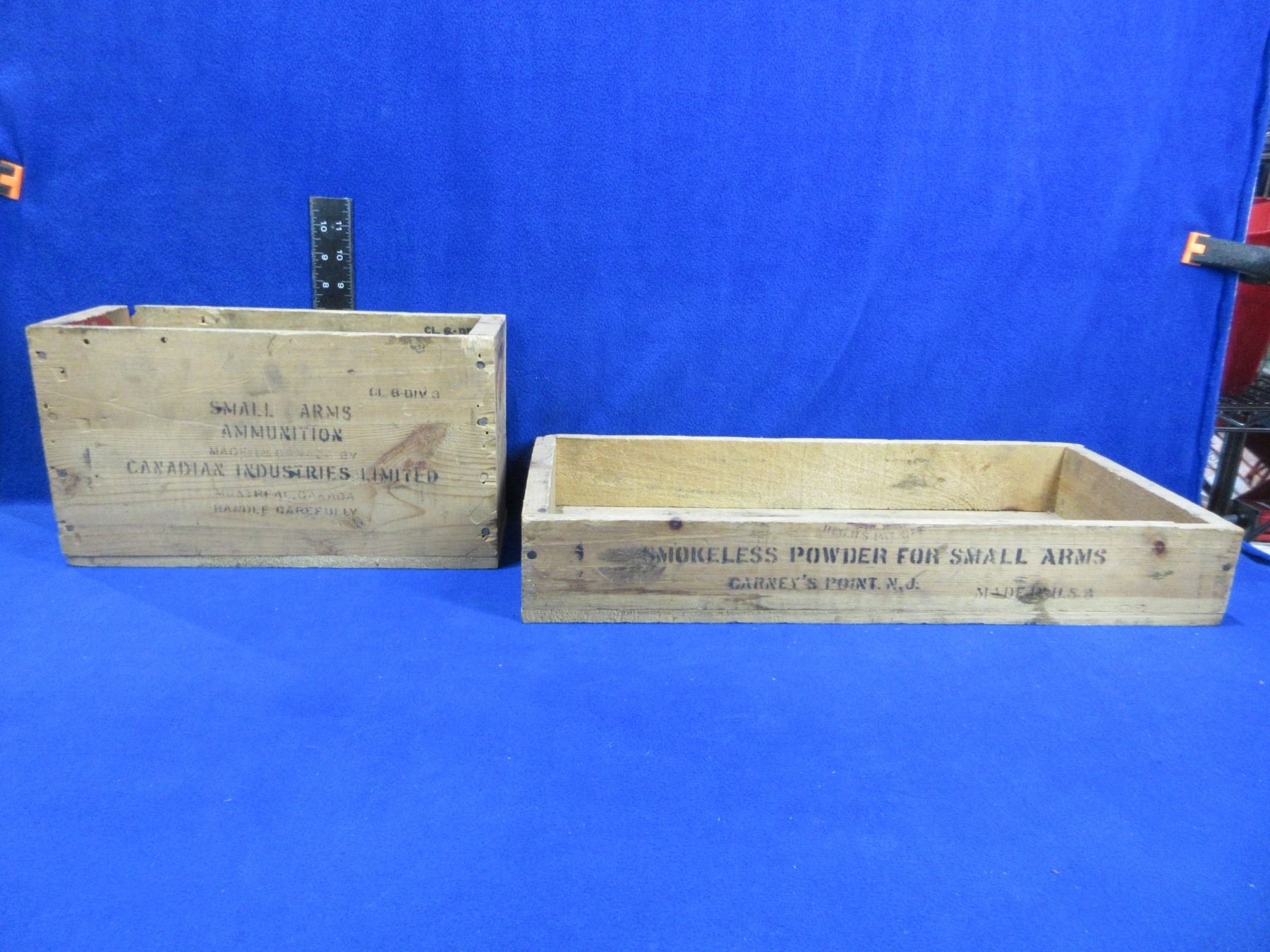 2 Wood Ammo Boxes - CIL (14" x 5 3/4" x 8" High) and Carney's Point N.J. (21 3/4" x 10" x 3 1/4" High)