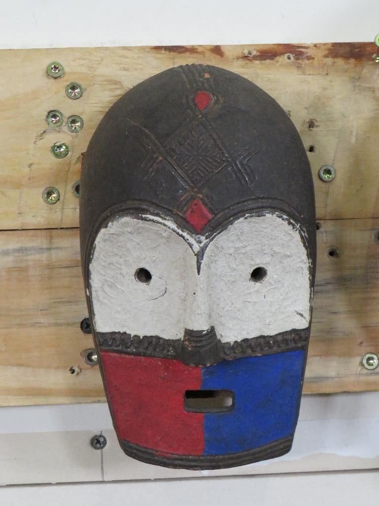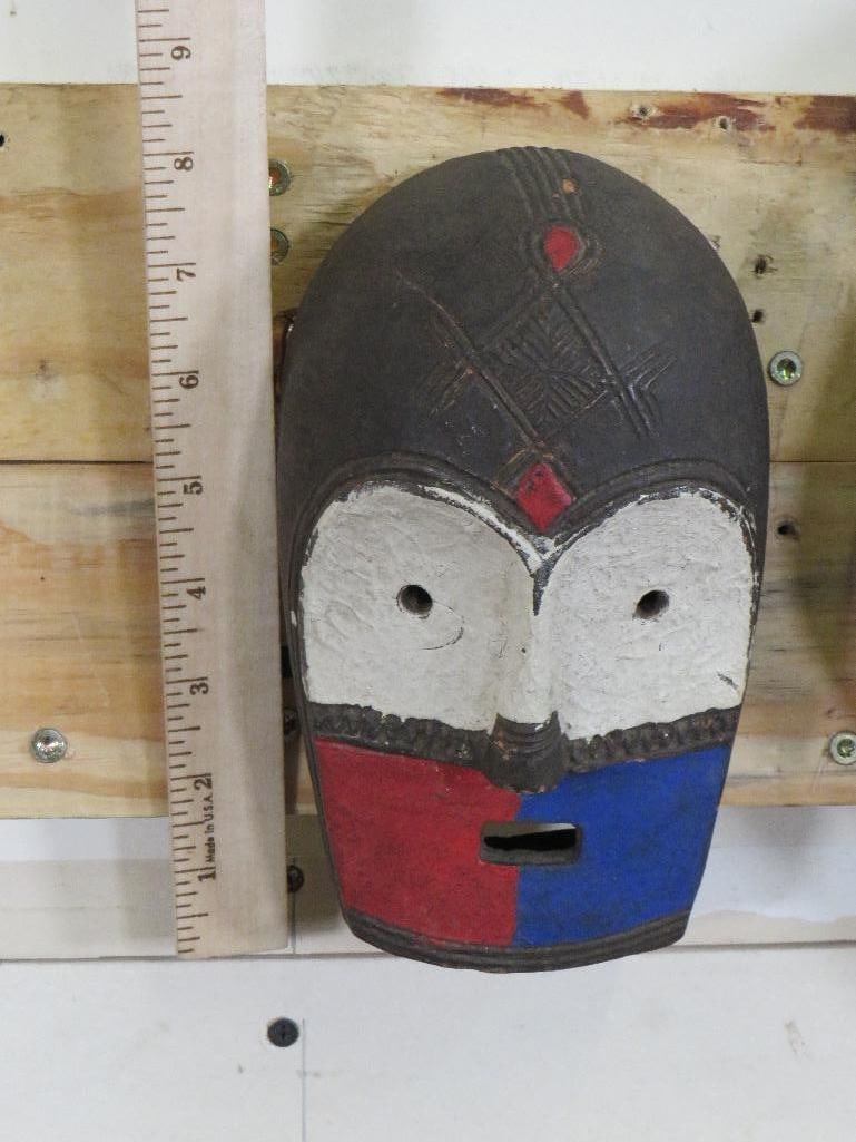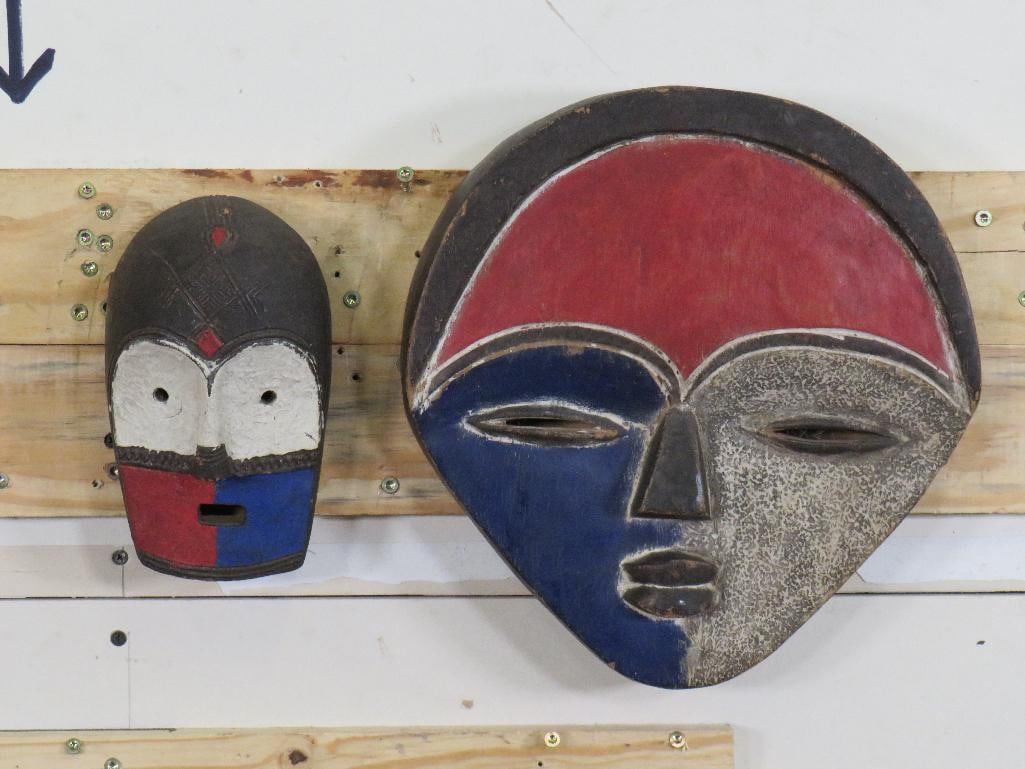 2 Wooden AFRICAN MASKS, Hand Carved & Painted. Larger is 11.5"x12" and smaller mask 5"x 9" (ONE$). COLLECTIBLE AFRICAN ART