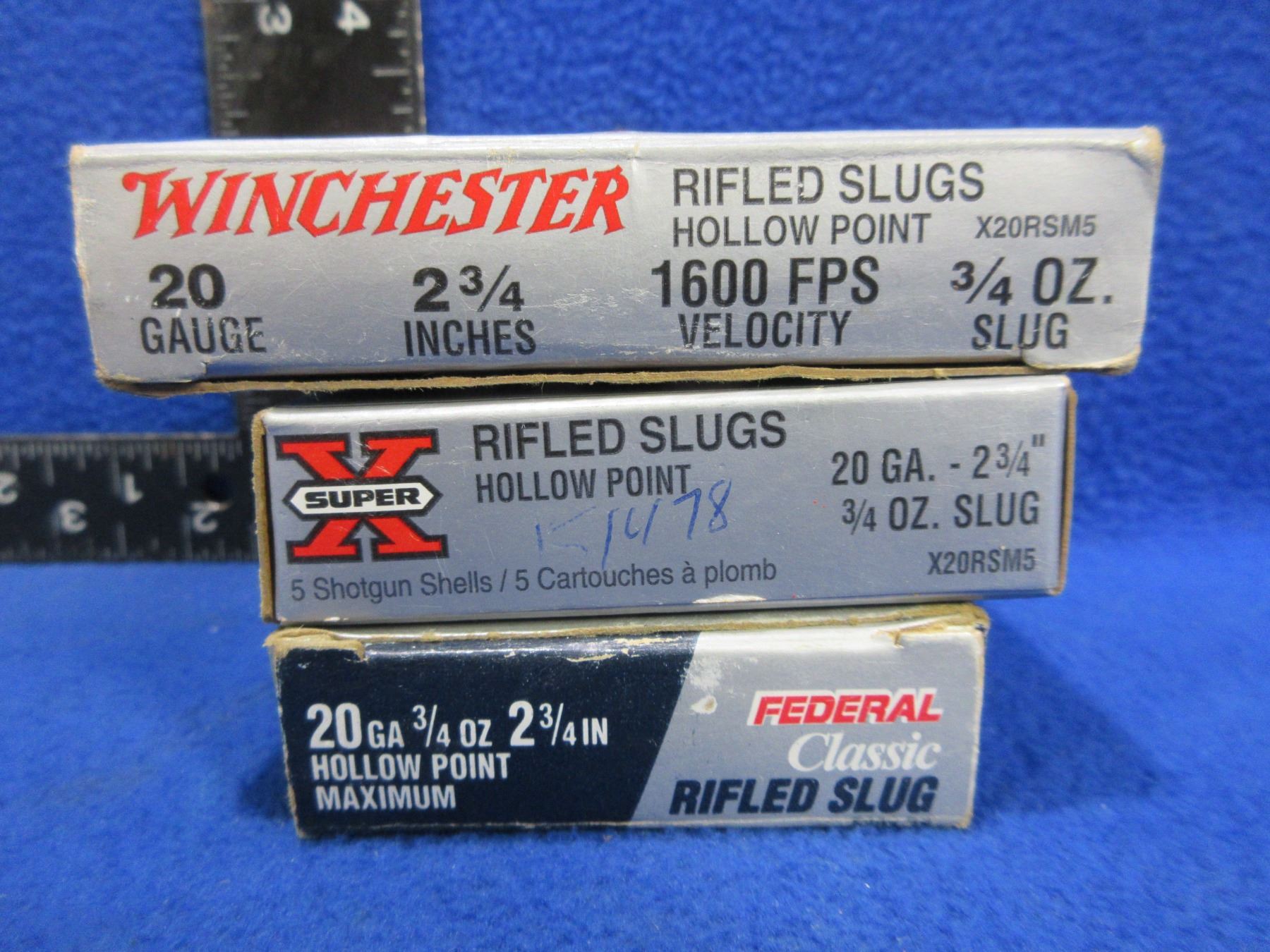 20 Ga. 2 3/4" 3/4 oz Rifled Slug Federal (Pick Up or Ship by UPS Only) Shotshells - 2 Boxes of 5, Box of 4
