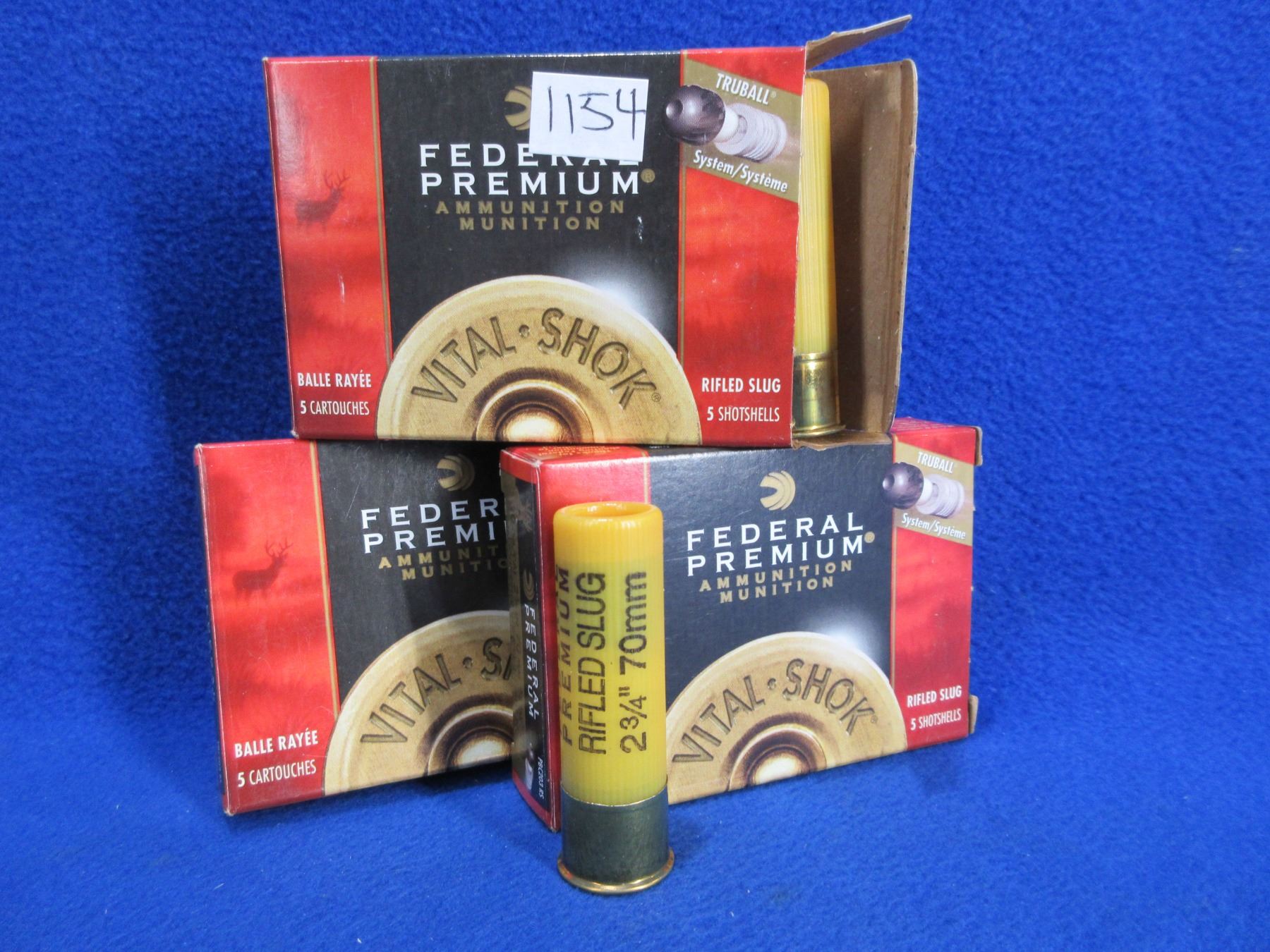 20 Ga. 2 3/4" 3/4 oz Truball Rifled Slug HP Federal Shotshells - 3 Boxes of 5 - PICK UP ONLY