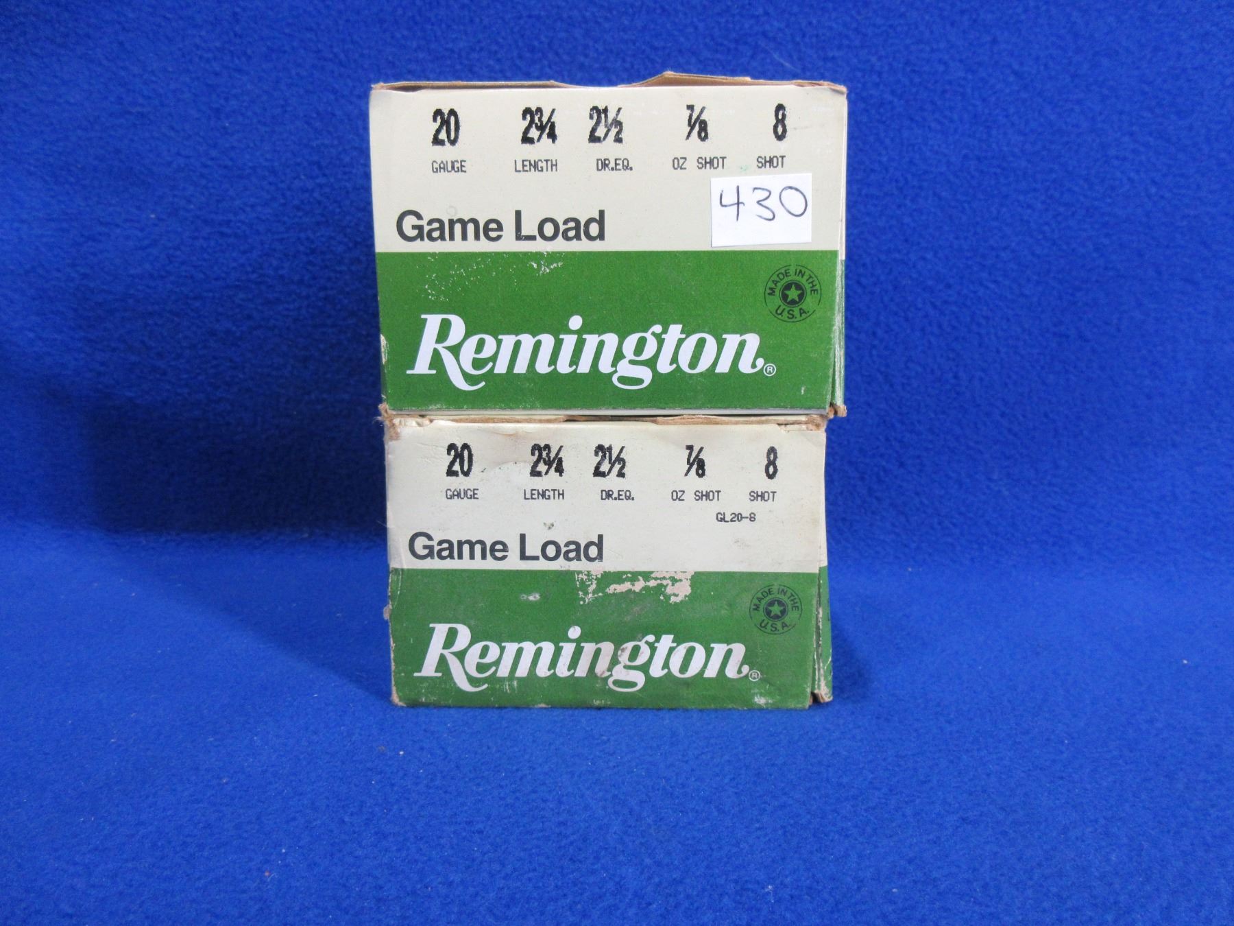 20 Ga 2 3/4" 8 Shot Game Load Remington Shotshells - 2 Boxes of 25 - 1 Box has some corrosion on shotshells due to water damage - Must Ship Purolator