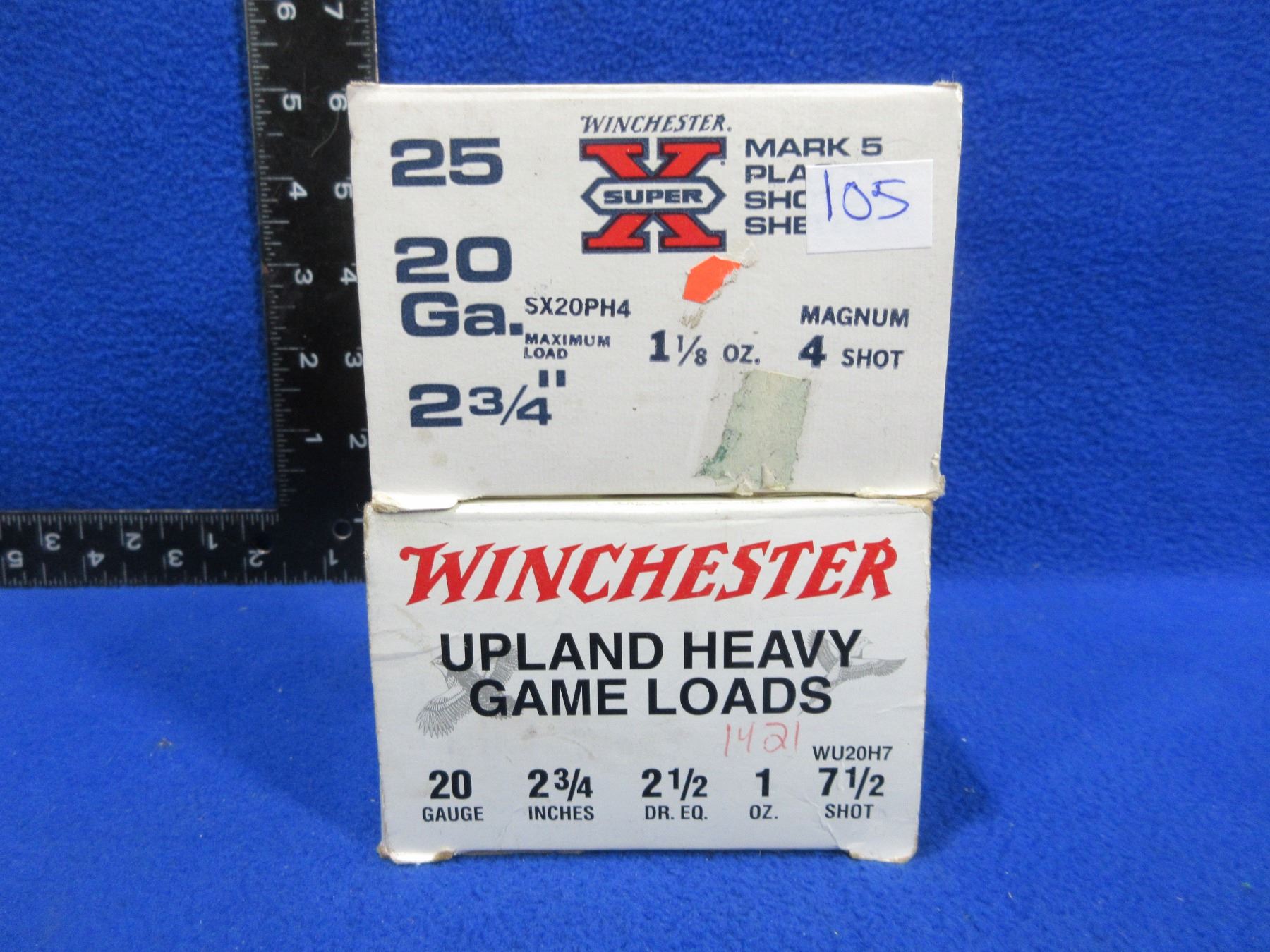 20 Ga. 2 3/4" Winchester Shotshells (Pick Up or Ship by UPS Only) - Box of 25 (4 Shot Magnum), Box of 21 (7 1/2 Shot)