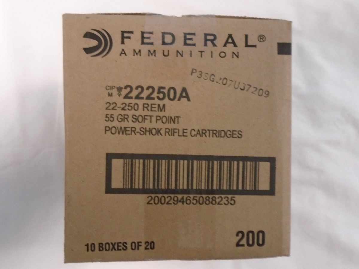 200 Rnds Federal Power-Shok 22-250 Rem 55gr SP