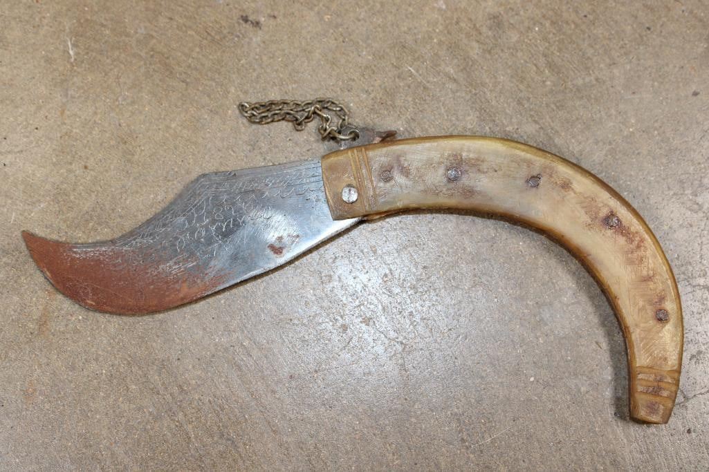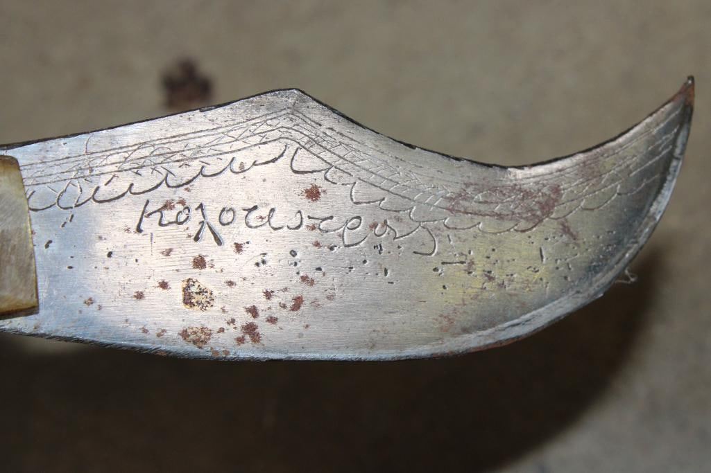 200 Year Old Antique KNIFE, Blade Etched "1826" with Writing in a Foreign Language