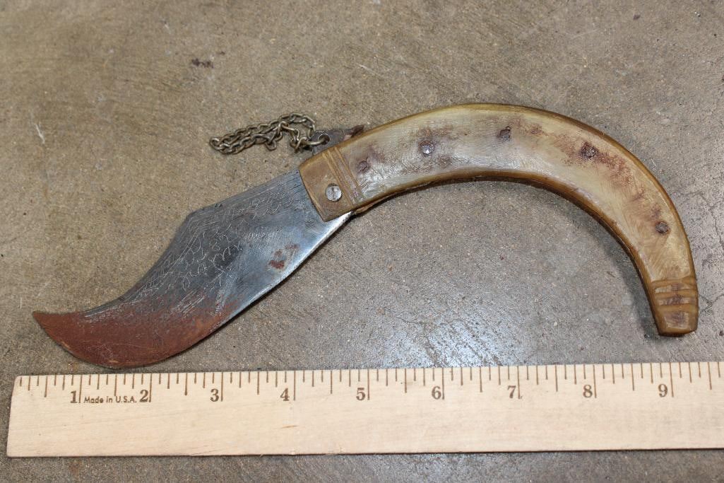200 Year Old Antique KNIFE, Blade Etched "1826" with Writing in a Foreign Language. It measures approximately 9" Long. COLLECTIBLE ANTIQUE KNIVES