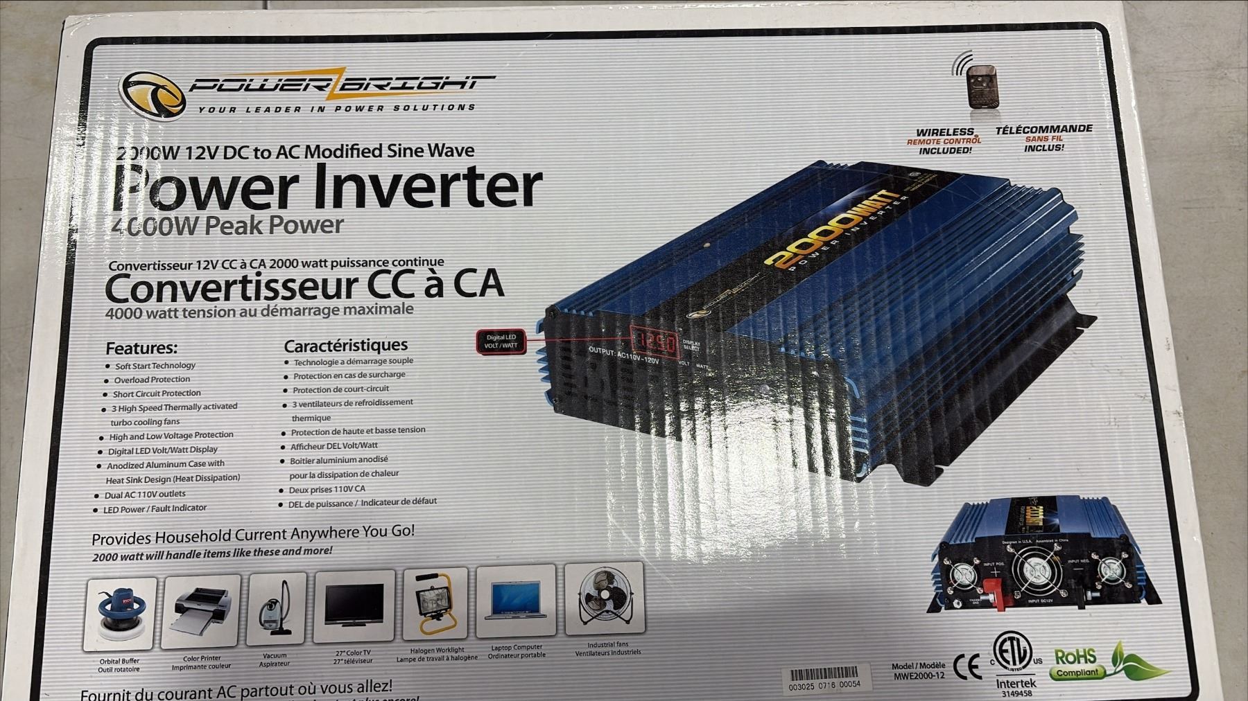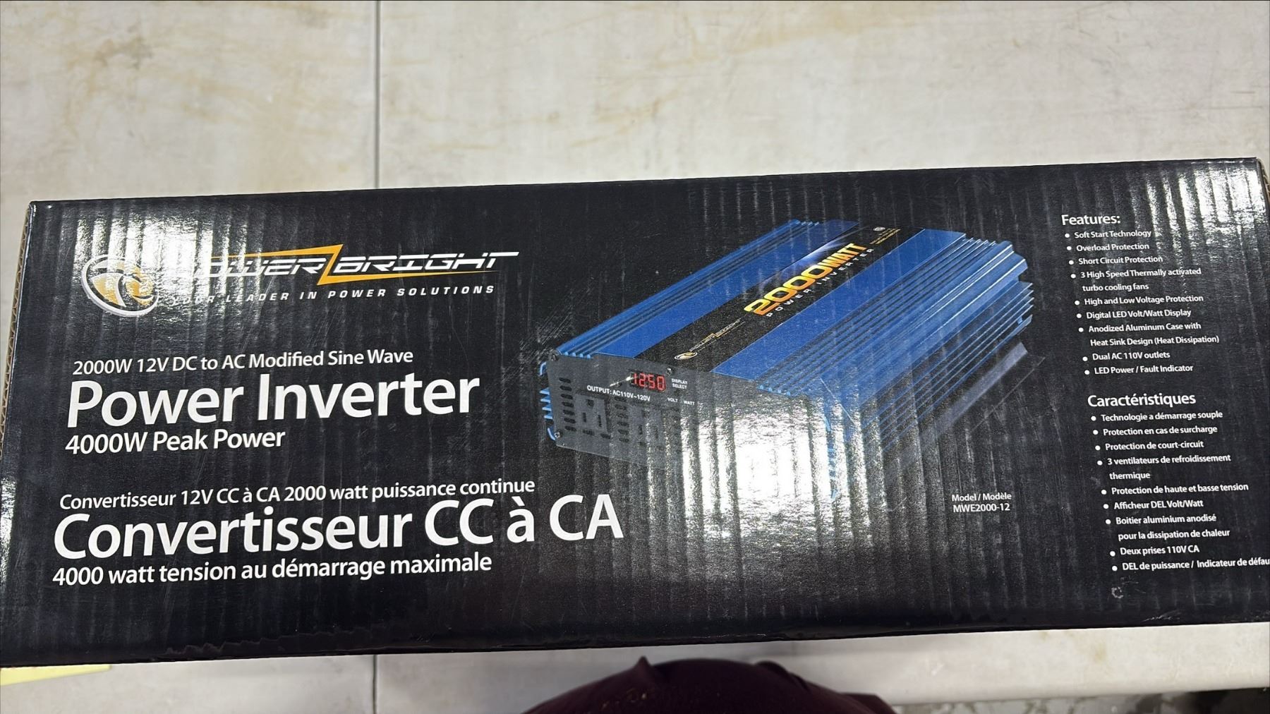 Power Bright 2000W 12V DC to AC Modified Sine Wave Power Inverter - 4000W Peak Power