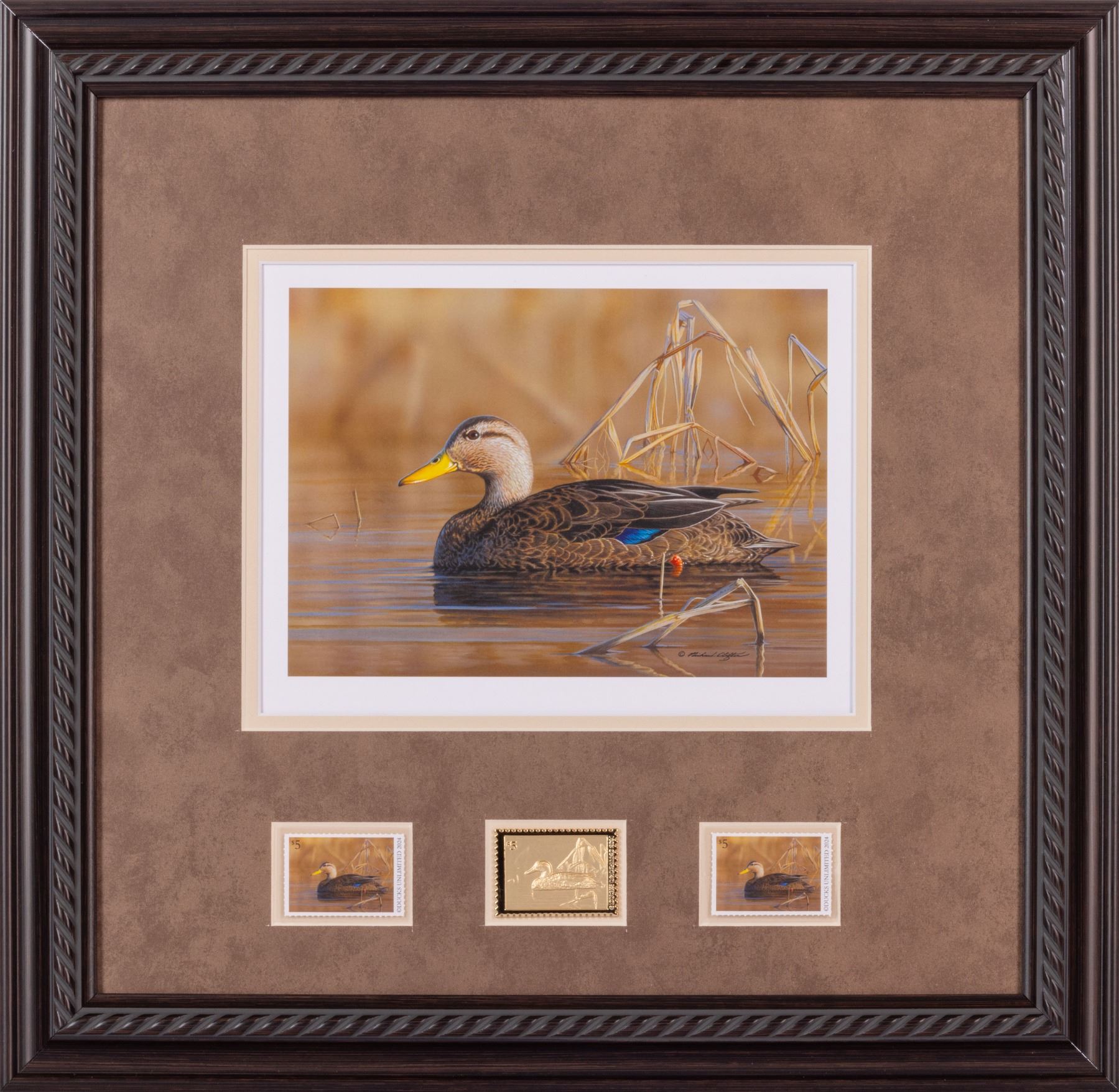 The 2024 DU Stamp Print by Richard Clifton is a remarkable representation of nature's beauty. The image showcases the grace of a black duck, skillfully captured by Richard Clifton's artistic touch. This edition marks the 41st in the lineage of DU stamp prints, a testament to the enduring legacy of this annual tradition. The package includes not only the meticulously matched DU stamp print, but also the stamp medallion, a mint stamp, and an artist-signed stamp. Richard Clifton's artistry and attention to detail bring the essence of the black duck to life in this timeless piece, a collectible that encapsulates the art, conservation, and tradition that Ducks Unlimited holds dear.