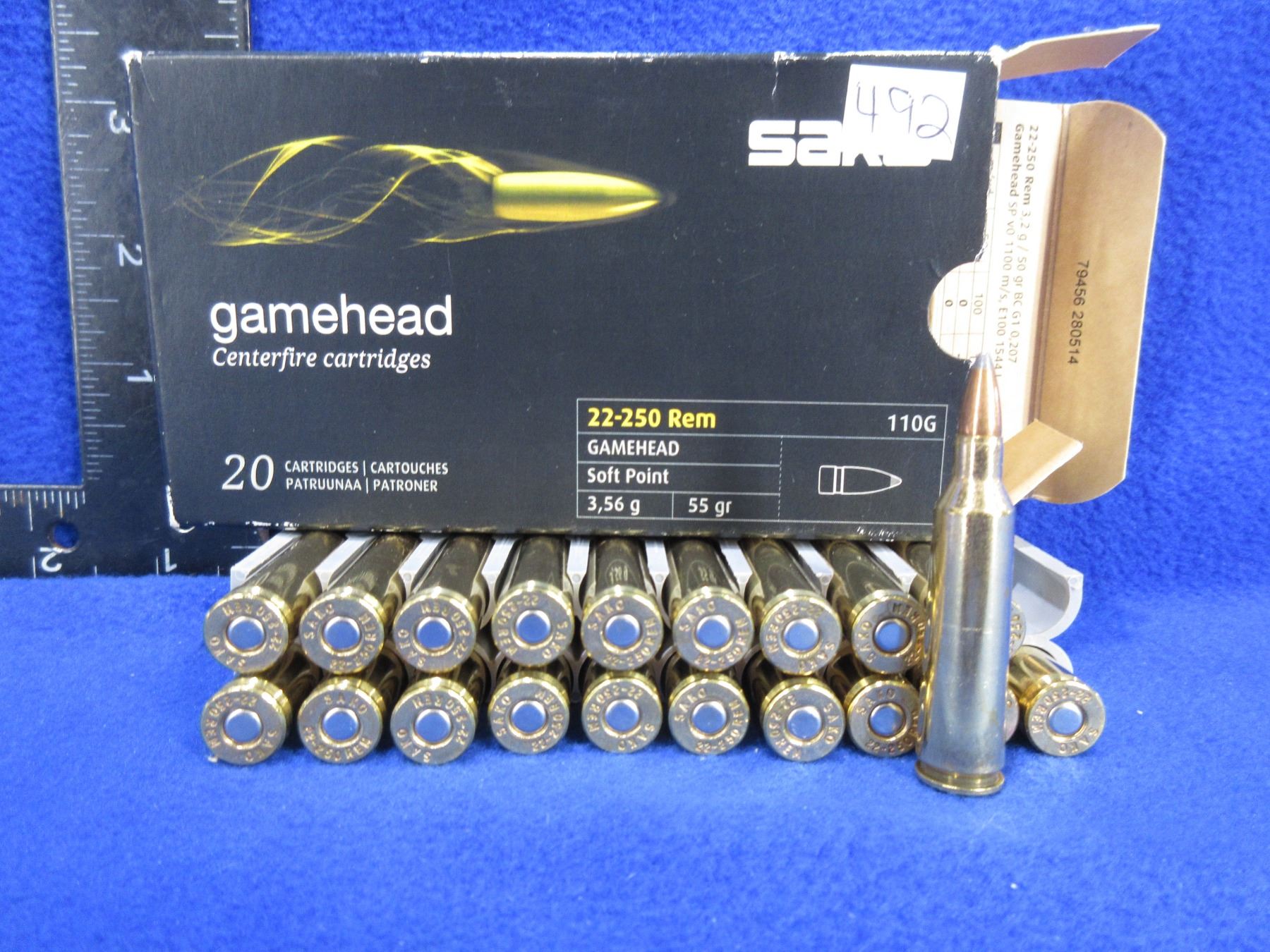22-250 Rem. 55gr SP Gamehead Sako Cartridges - Box of 20 - Must Ship Purolator