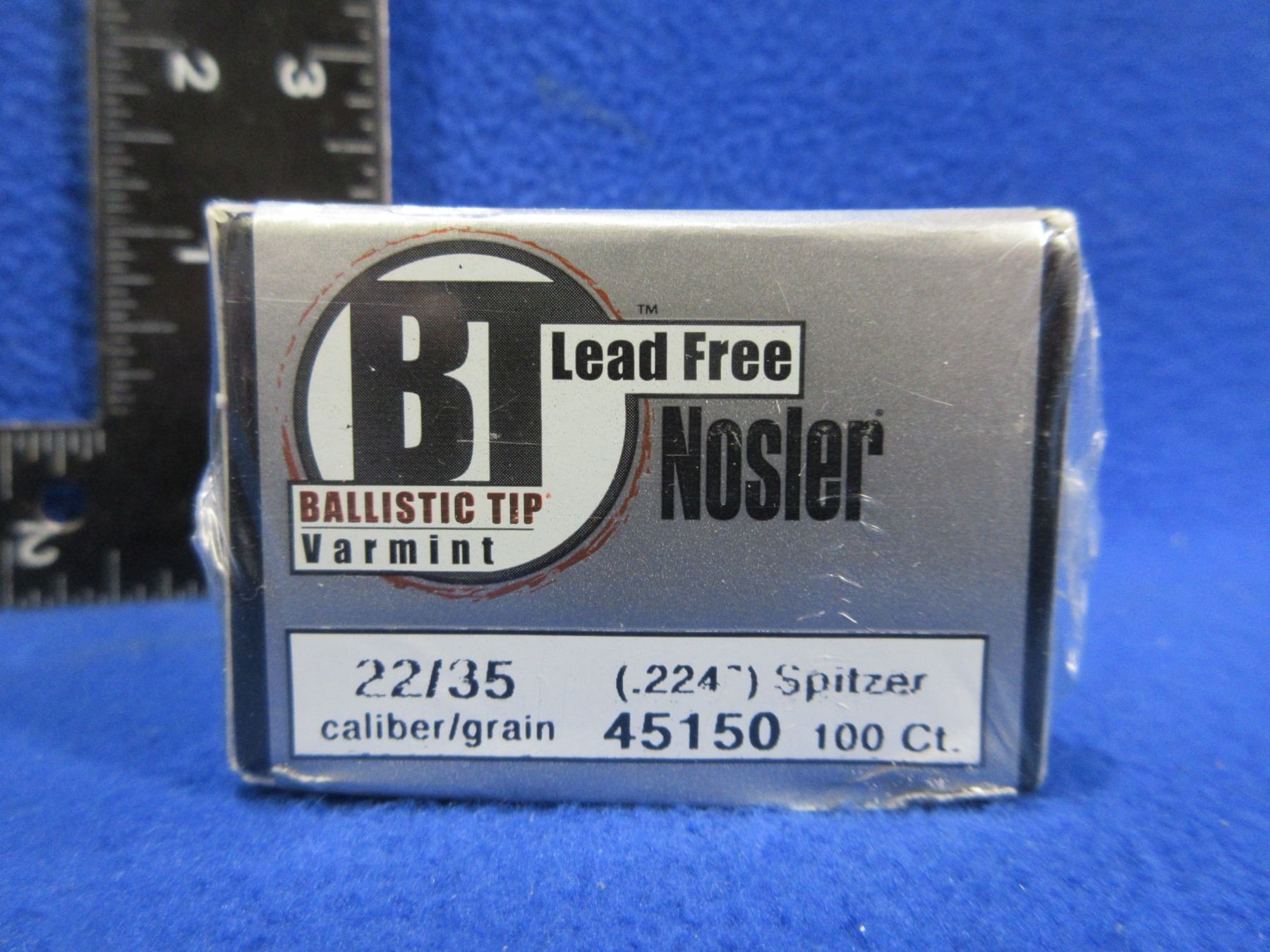 22 Cal. .224" 35gr Spitzer Ballistic Tip Nosler Bullets - Sealed Box of 100