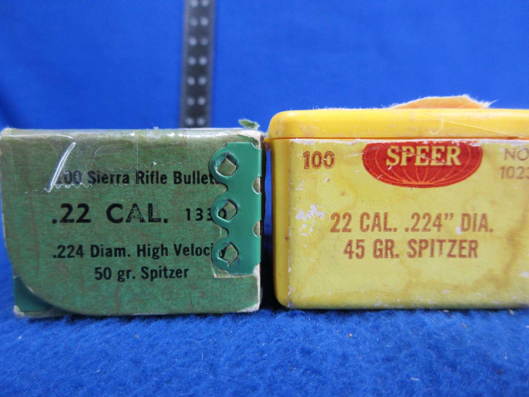 22 Cal. .224" Spitzer Sierra and Speer Bullets - Box of 77 (Sierra 50gr), Box of 25 (Speer 45gr)
