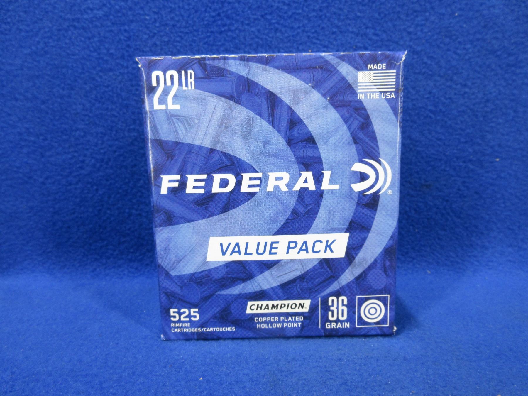22 LR 36gr HP Copper-Plated Federal Champion Cartridges - Sealed Box of 525 - Must Ship Purolator