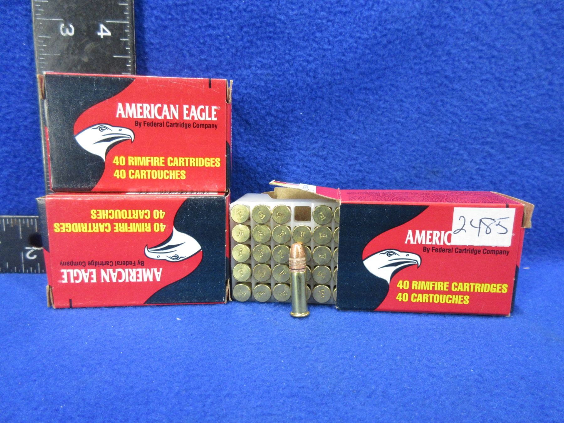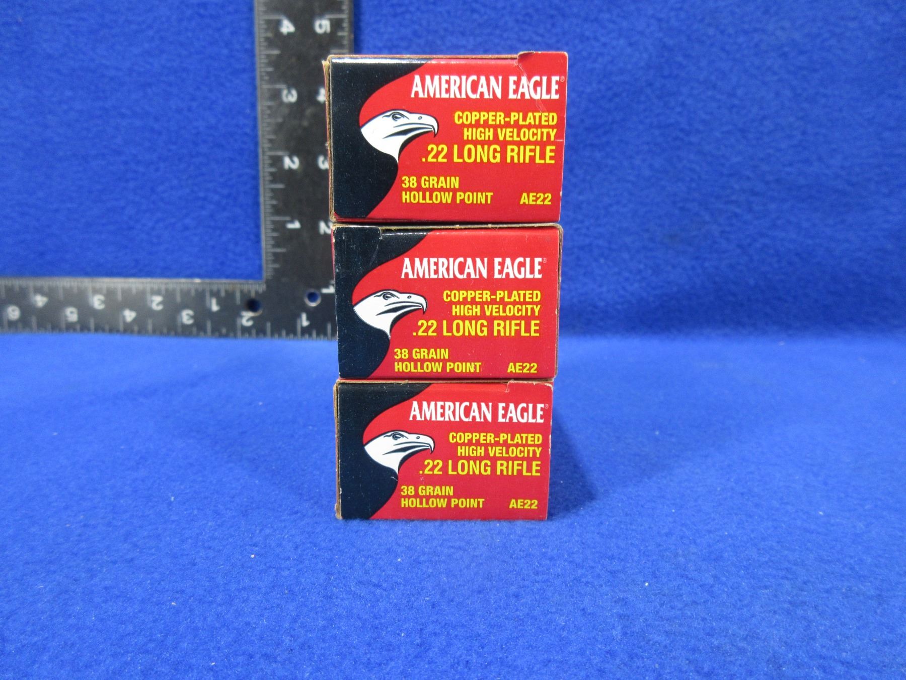 22 LR 38gr HP HV Federal American Eagle Cartridges - 3 Boxes of 40 - Must Ship Purolator