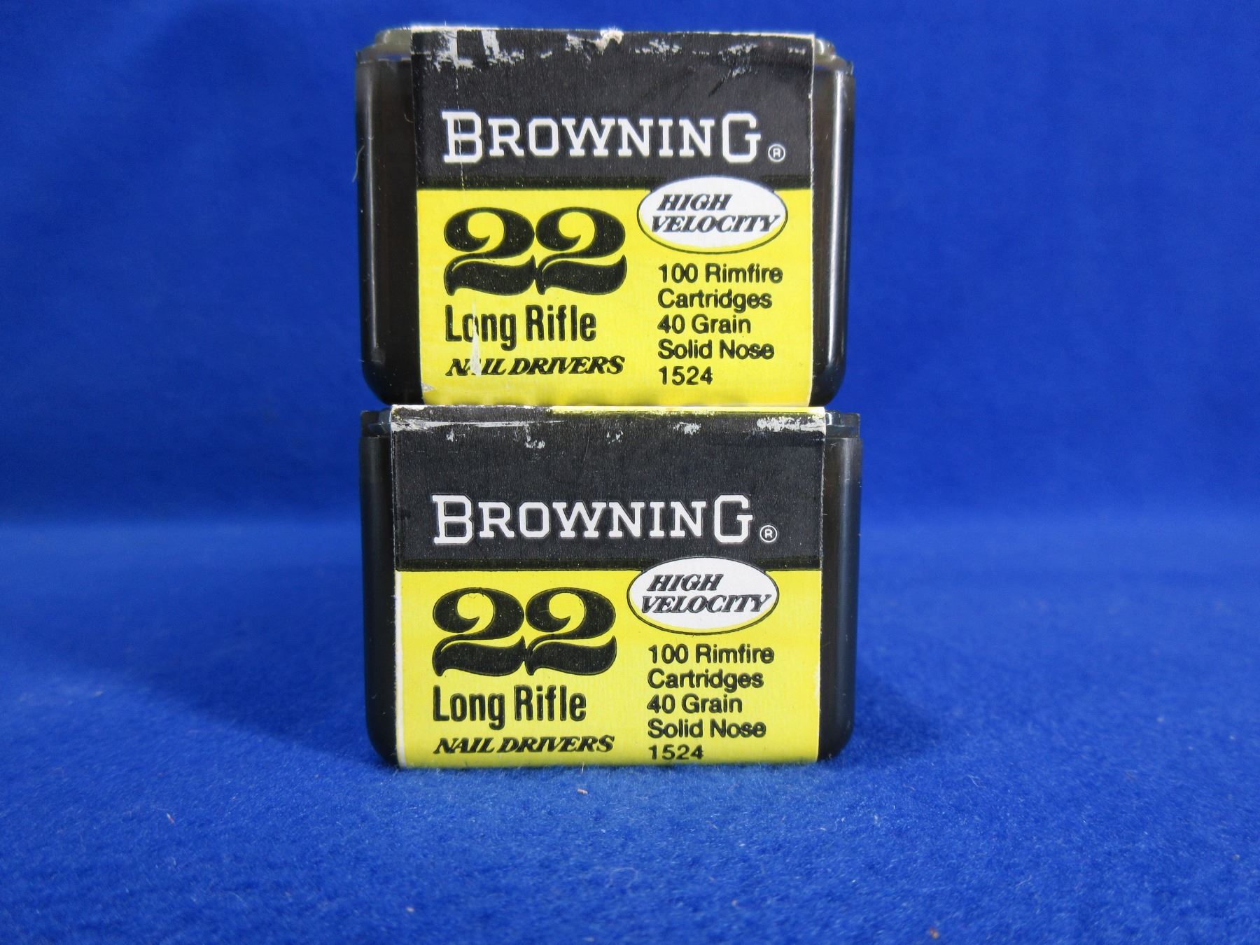 22 LR 40gr HV Solid Nose Nail Drivers Browning Cartridges - 2 Sealed Boxes of 100 - Must Ship Purolator