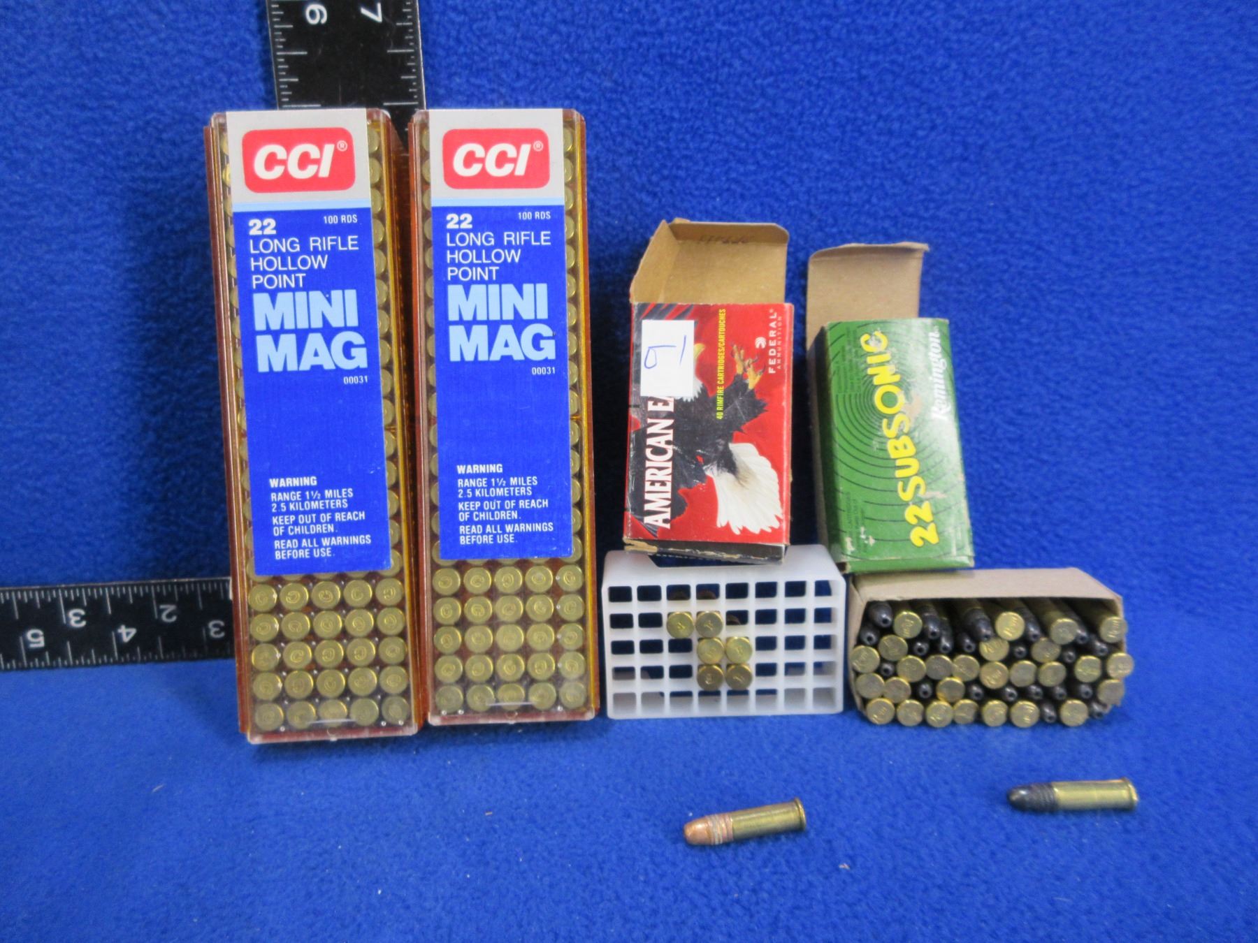 22 LR CCI, Federal & Remington Cartridges (Pick Up or Ship by UPS Only) - 2 Sealed Boxes of 100 (CCI HP Mini-Mag), Box of 49 ( Remington 38gr HP Subsonic), Box of 7 (Federal 38gr HP)