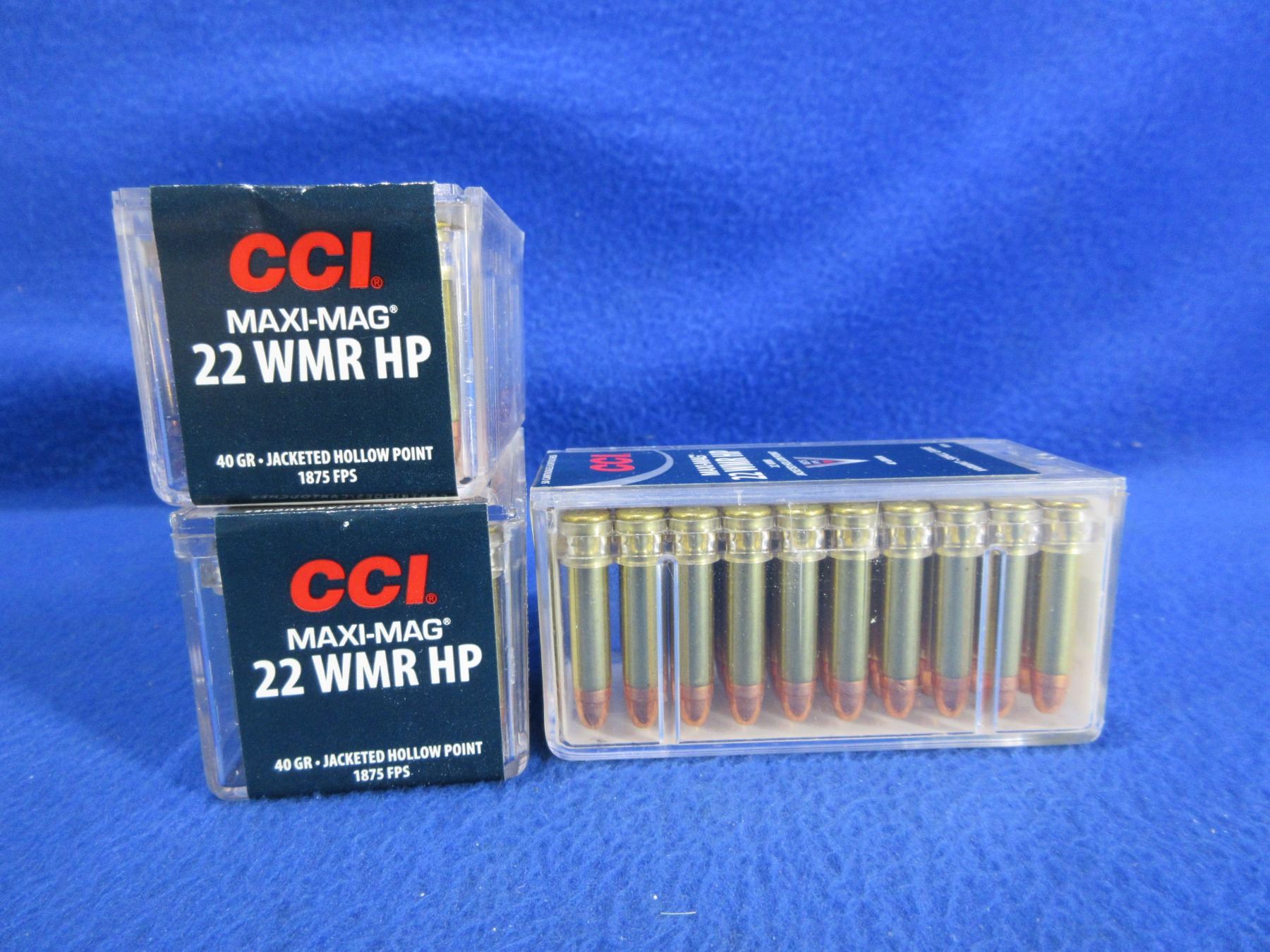 22 WMR 40gr JHP Maxi-Mag CCI Cartridges - 3 Sealed Boxes of 50 - PICK UP ONLY