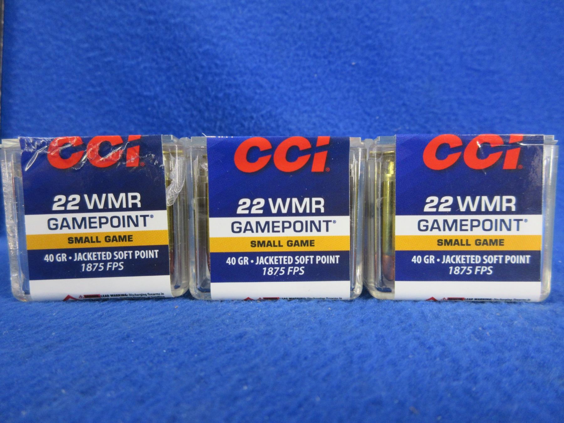 22 WMR 40gr JSP CCI Gamepoint Cartridges - 3 Sealed Boxes of 50 - PICK UP ONLY