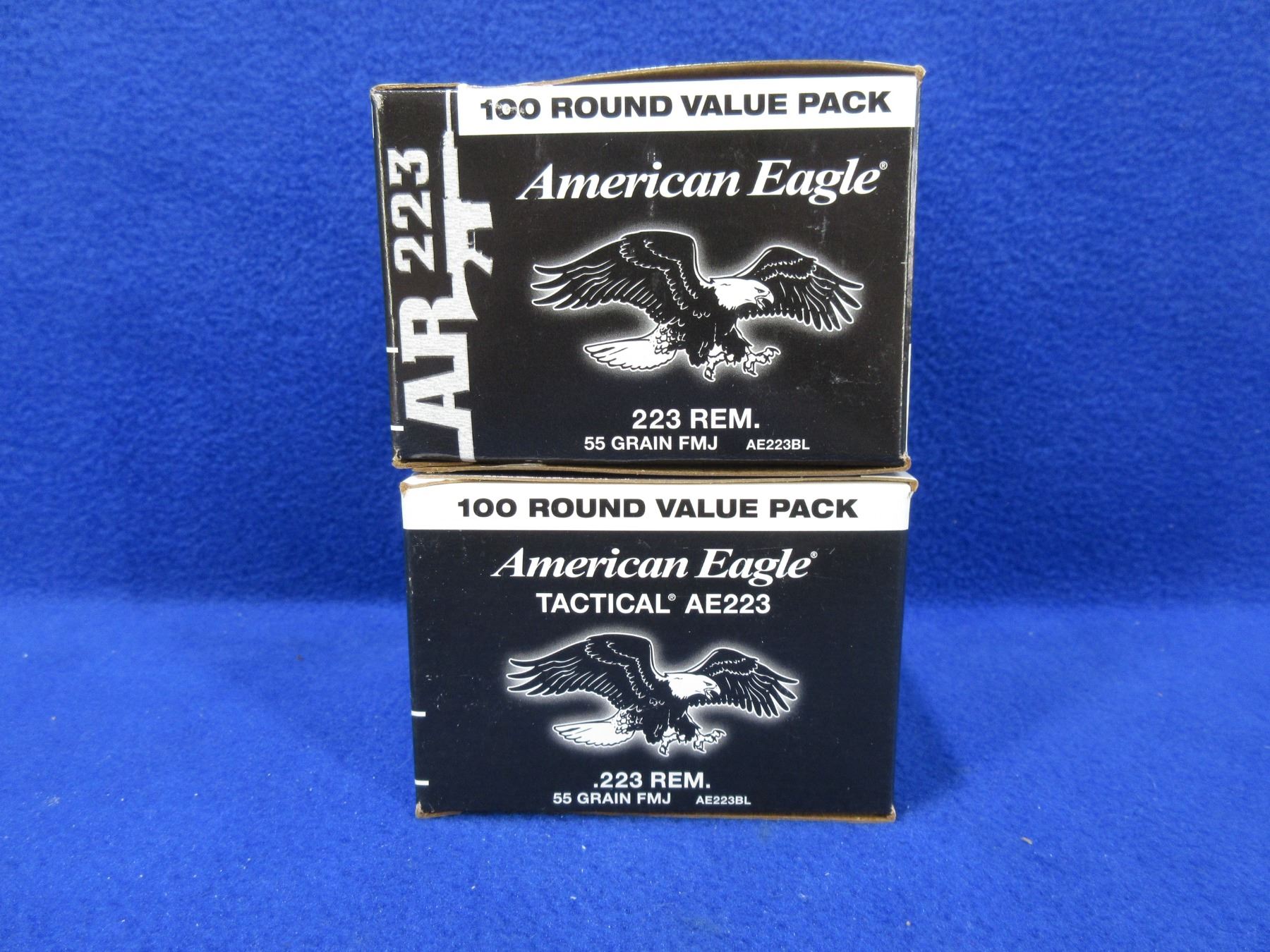 223 Rem. 55gr FMJ American Eagle Tactical Cartridges - 2 boxes of 100