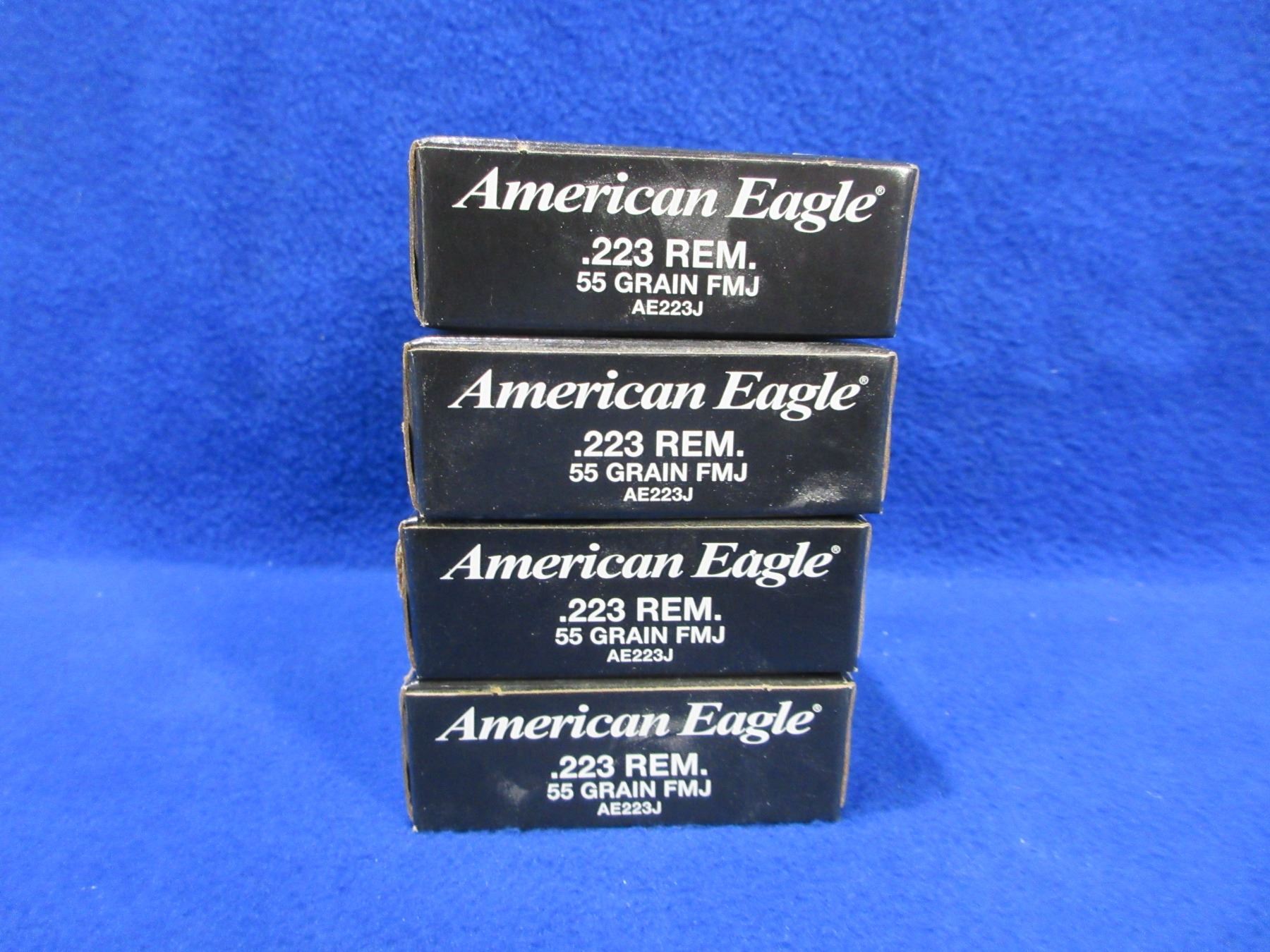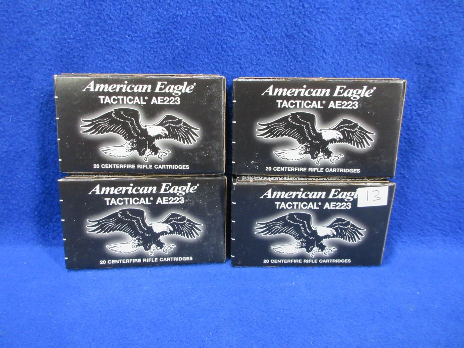 223 Rem. 55gr FMJ American Eagle Tactical Cartridges - 4 Sealed Boxes of 20 - PICK UP ONLY