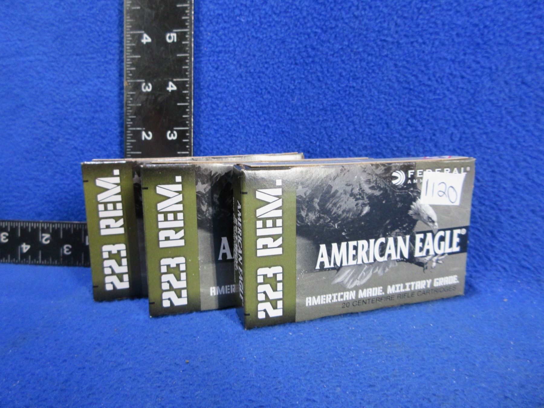223 Rem. 55gr FMJ Federal American Eagle Cartridges (Pick Up or Ship by UPS Only) - 3 Sealed Boxes of 20