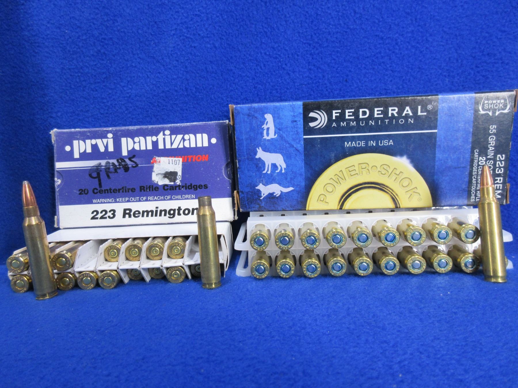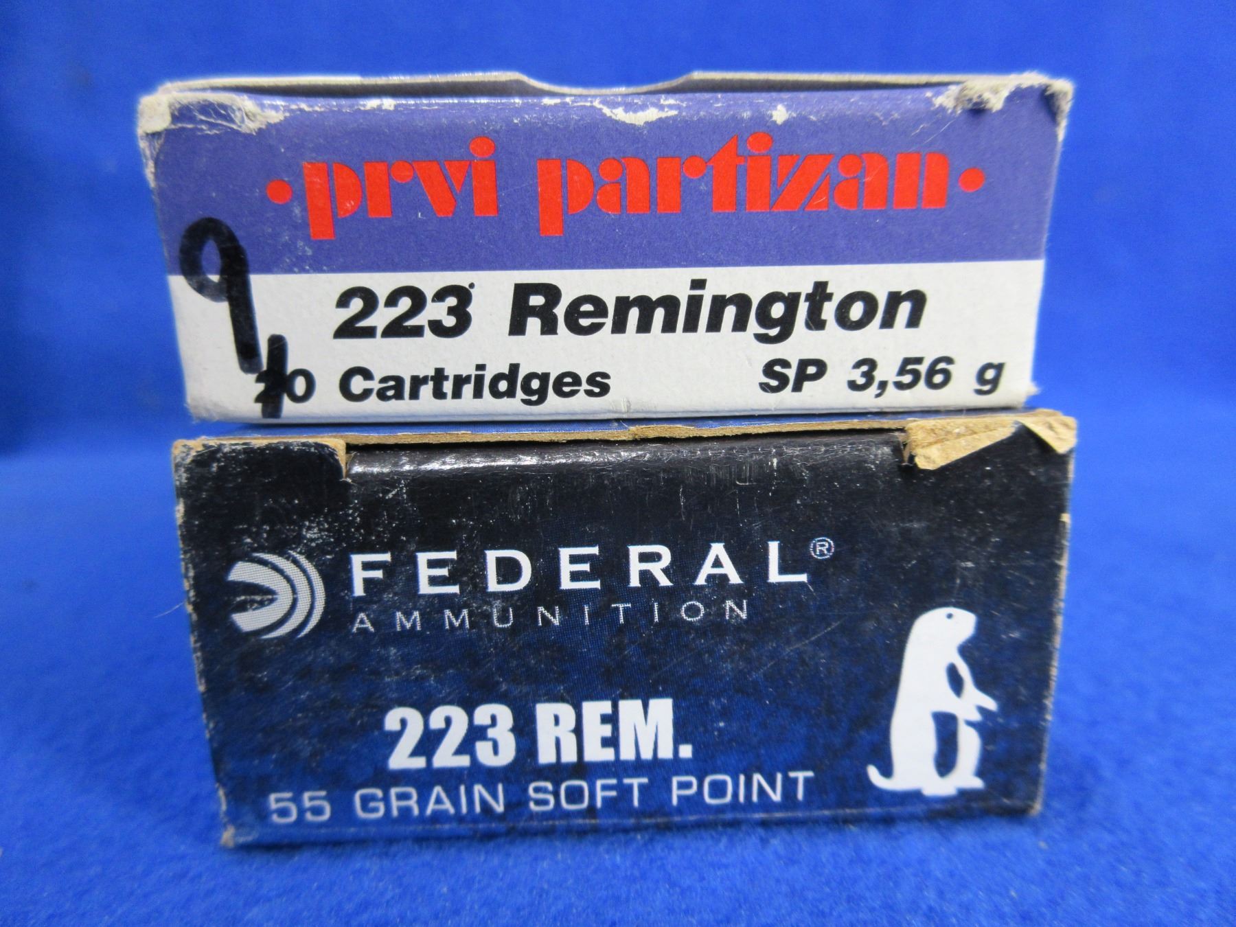 223 Rem. 55gr SP Federal and Prvi Partizan Cartridges - Box of 20 ( Federal), Box of 9 + 9 Brass (Prvi Partizan) - Must Ship Purolator