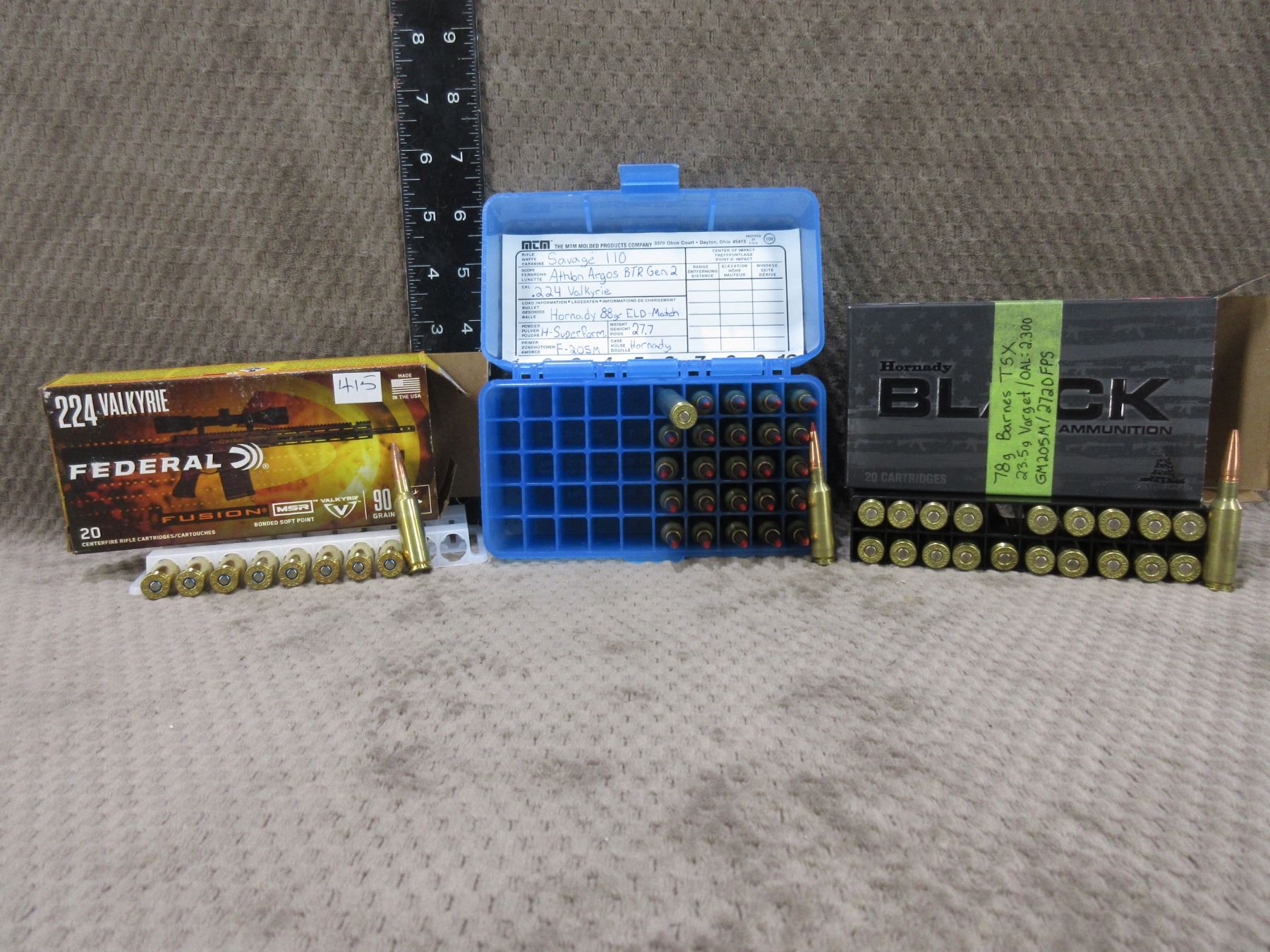 224 Valkyrie Cartridges - 9 Federal Factory, 20 Hornady Reloads, 26 Hornady Reloads - Sold as Components