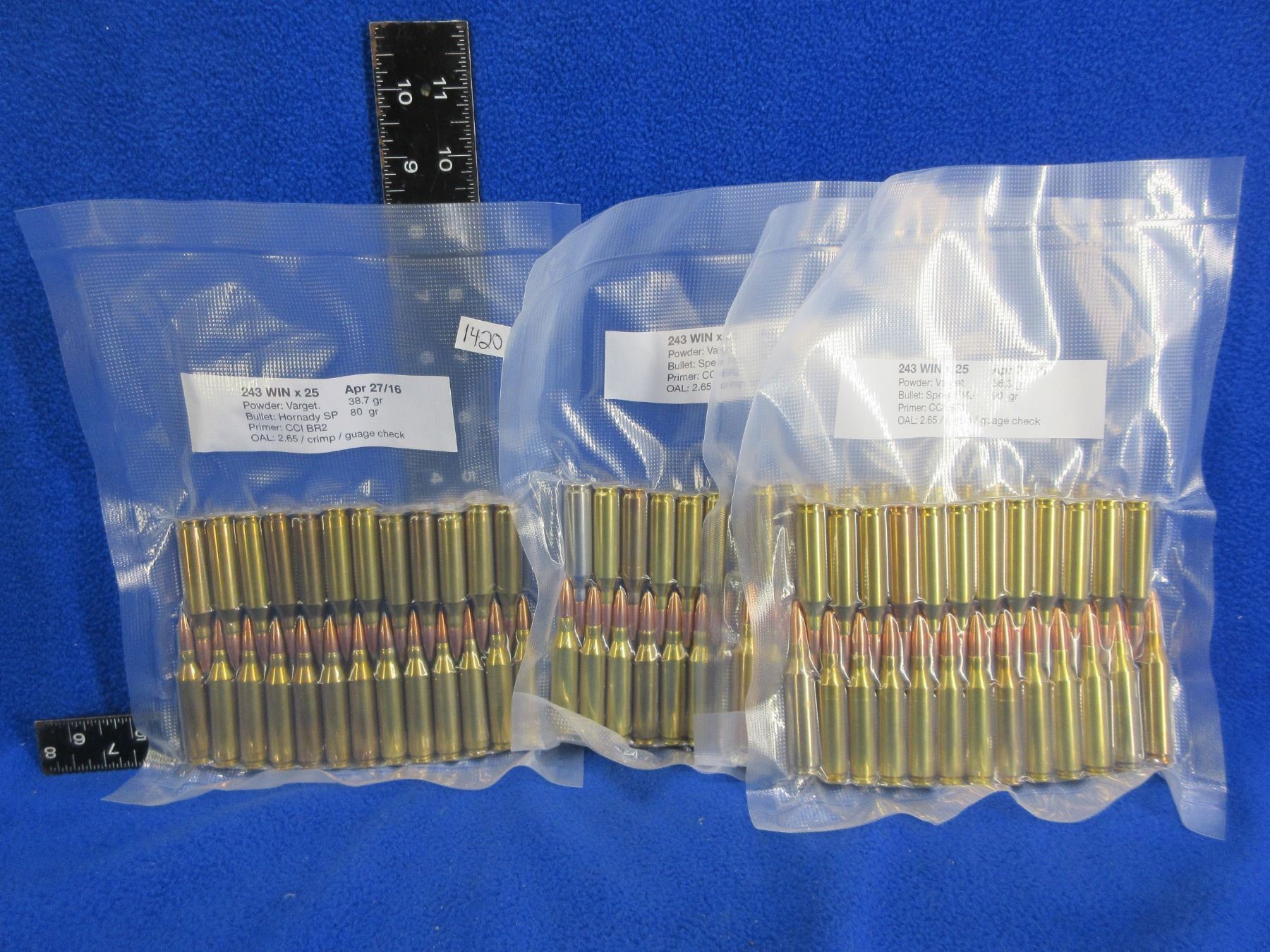 243 Win. Reloads - 4 Bags of 25 (Pick Up or Ship by UPS Only) - Sold as Components