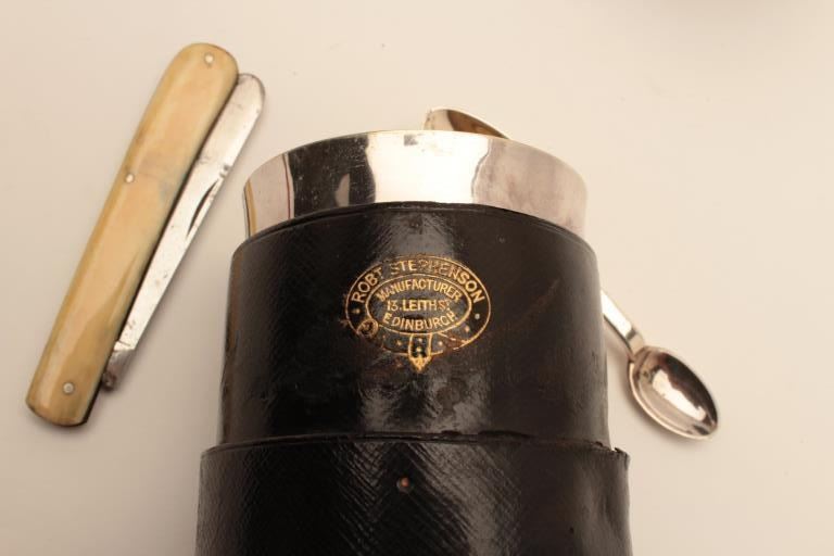 18AL-13 UTILITY AND EATING UTENSILSUtility and eating utensils in carry case; very high quality; type for officers; marked “Rob’t Stephenson/Edinburgh”. Est.: $350-$700.Utility and eating utensils in carry case; very high quality; type for officers; marked “Rob’t Stephenson/Edinburgh”. Est.: $350-$700.