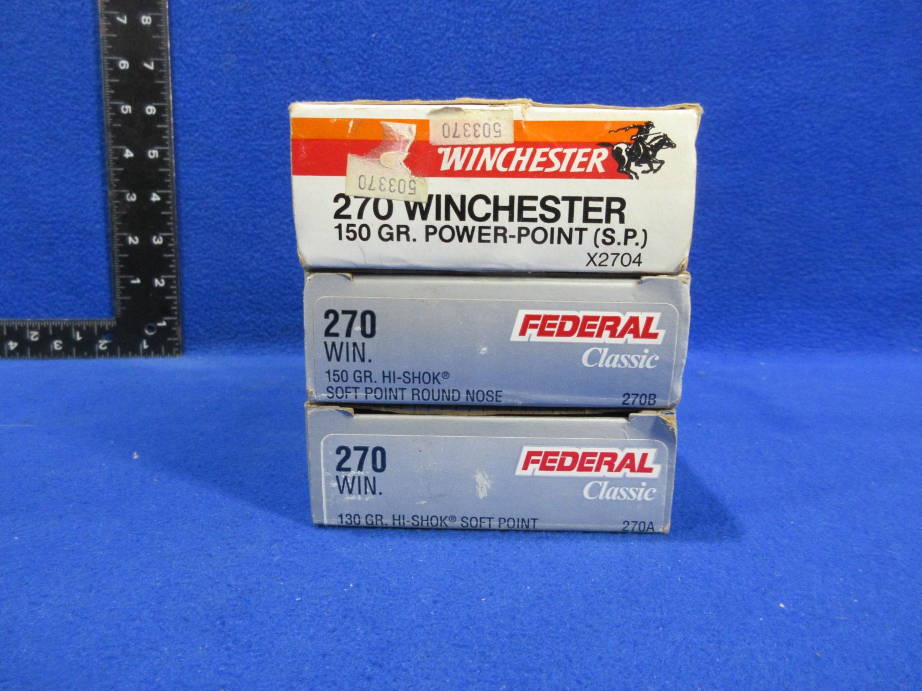 270 Win. Federal & Winchester Cartridges (Pick Up or Ship by UPS Only) - 2 Boxes of 20 (Federal 150gr SP RN), Box of 7 + 3 Brass (Winchester 150gr PP)