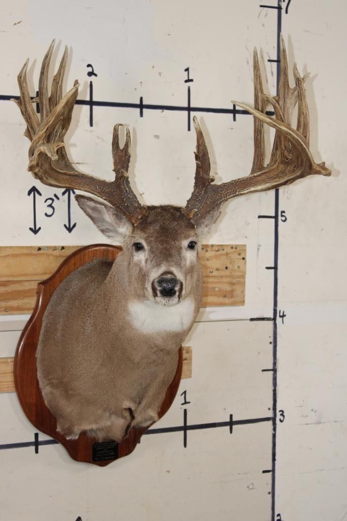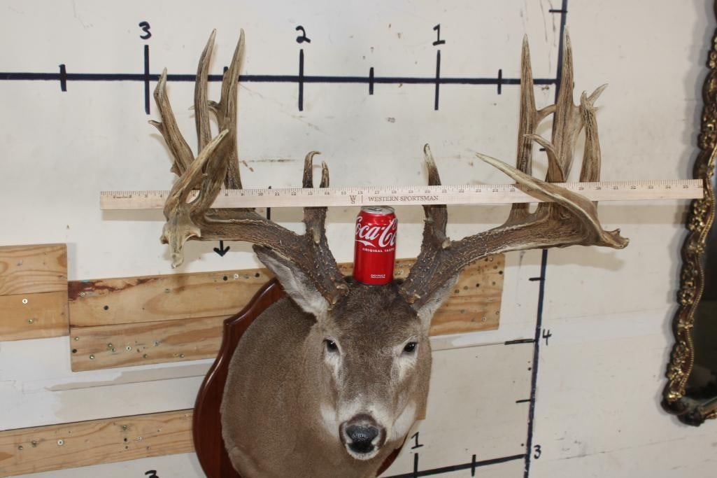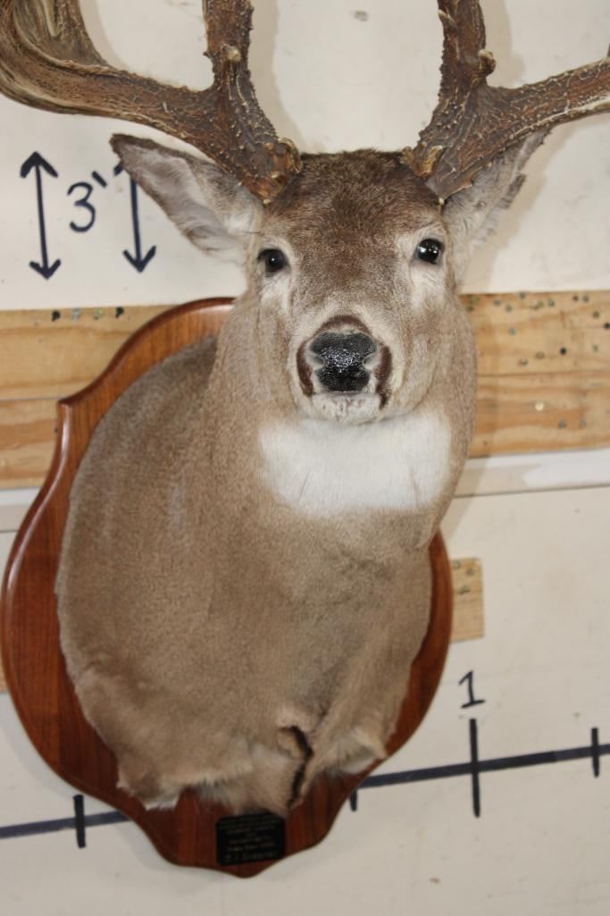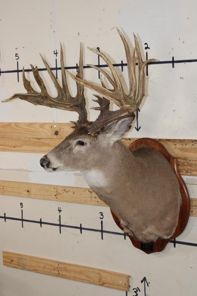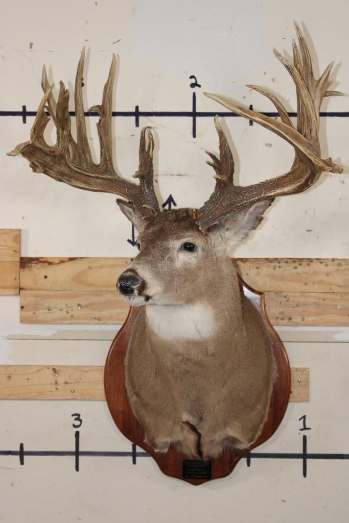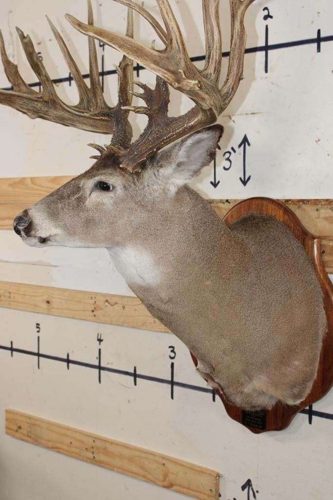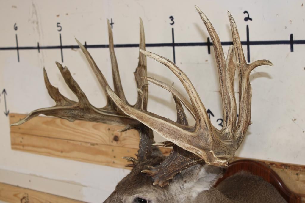 29-Point WHITETAIL Deer Shoulder Mount with Reproduction Antlers after Keith Dahmer's Edmonton Alberta 1993, with 256 4/8 Non-Typical Boone and Crockett Points. It has a 28" Spread. COLLECTIBLE TAXIDERMY