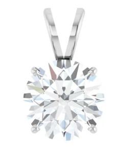 Description: 2 ct round brilliant diamond with amazing F color and VS1 clarity. Comes with complementary silver & platinum chain in 18” length. Length can be exchanged at the show or via shipment.