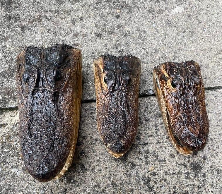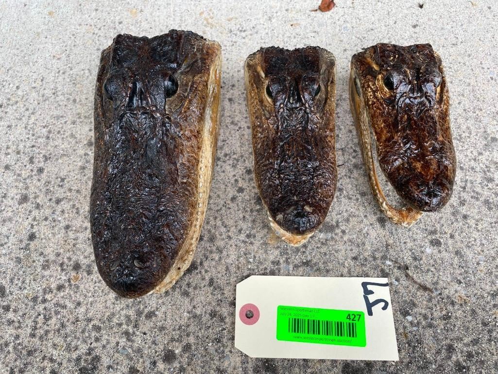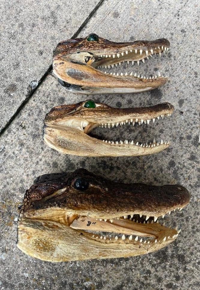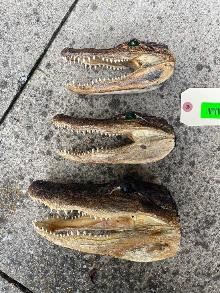 3 ALLIGATOR Heads with All the Teeth and Glass Eyes. They measure 9" Long, 8.5" Long, and 7" Long. Great Oddity Decor! (ONE$) ODDITIES AND CURIOSITIES TAXIDERMY