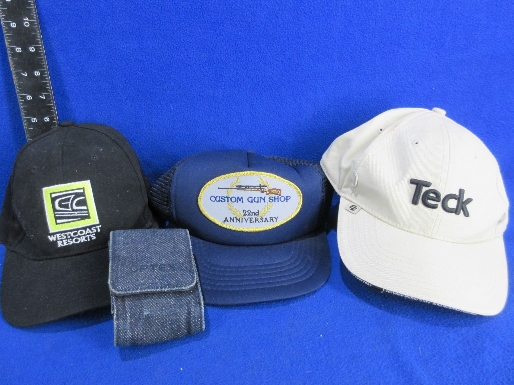 3 Ball Caps & Optex Pouch - Custom Gun Shop, Teck & West Coast Resorts