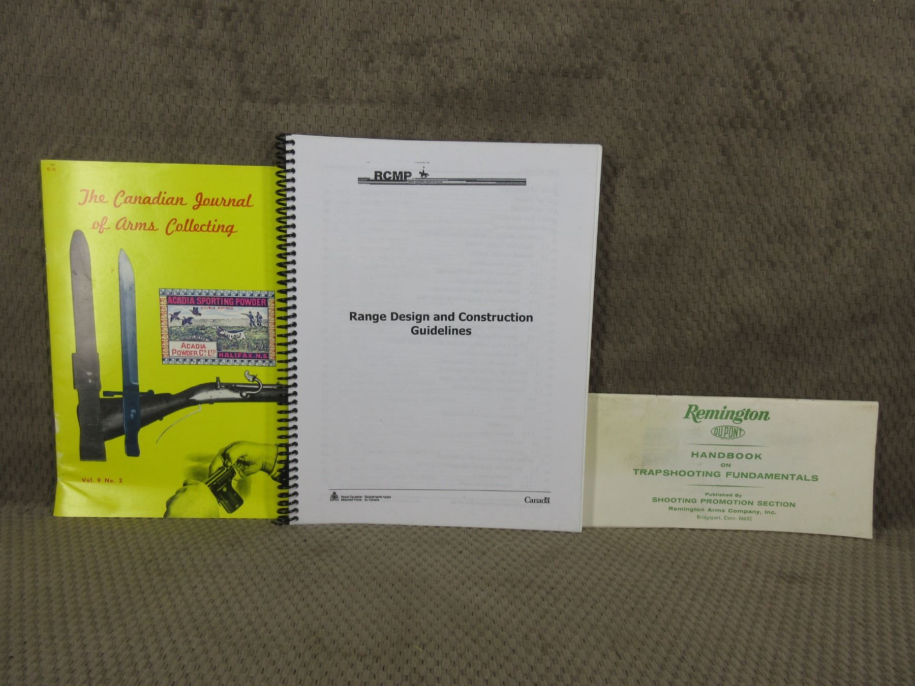 3 - Books/Catalogs Remington Trapshooting Fundamentals, The Canadian Journal of Arms Collecting, RCMP Range Design and Construction Guidelines