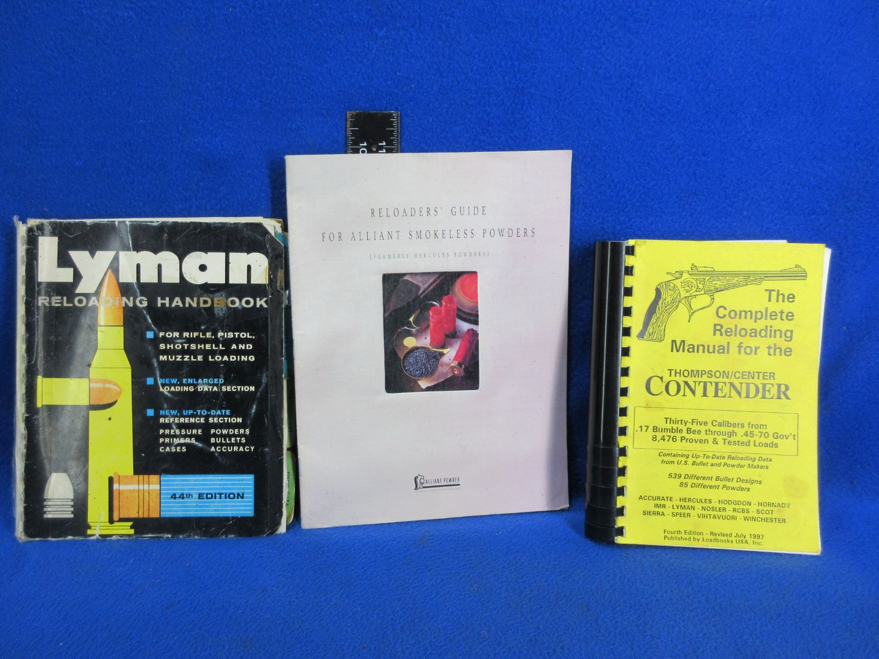 3 Books - The Complete Reloading Manual for the Thompson/Center Contender 4th Edition, Lyman Reloading Handbook 44th Edition, Reloader's Guide for Alliant Smokeless Powders