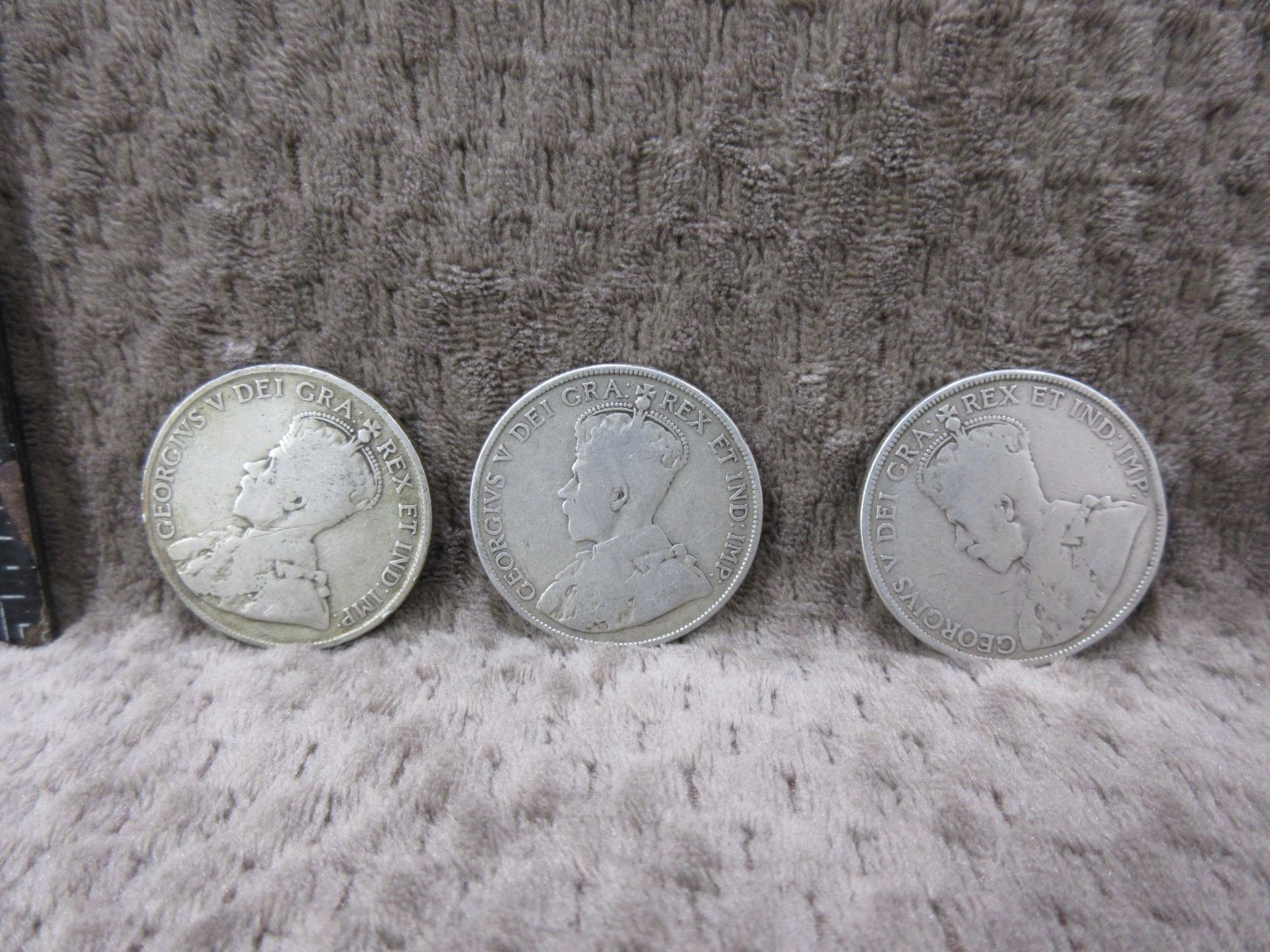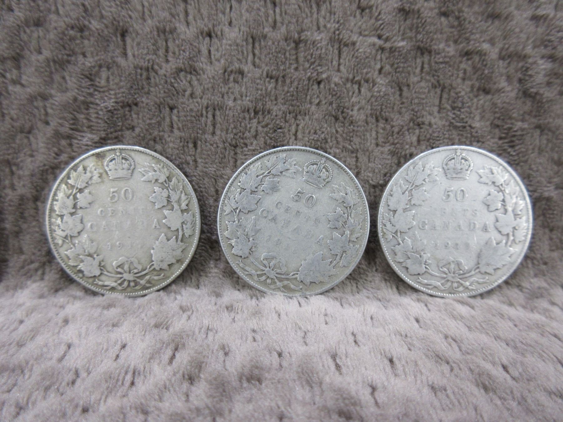 3 - Canadian 50 Cent Pieces - 1918, 1919, 191? - 925 Silver