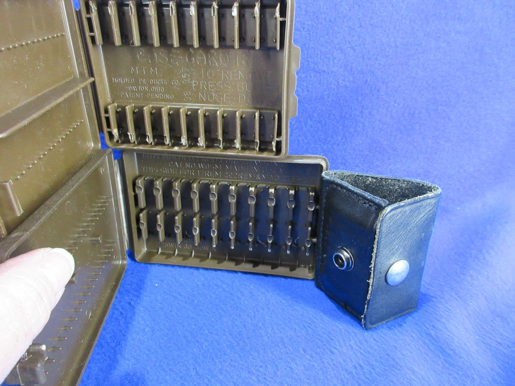 3 Cartridge Holders - 2 Plastic MTM and 38 Cal. Leather