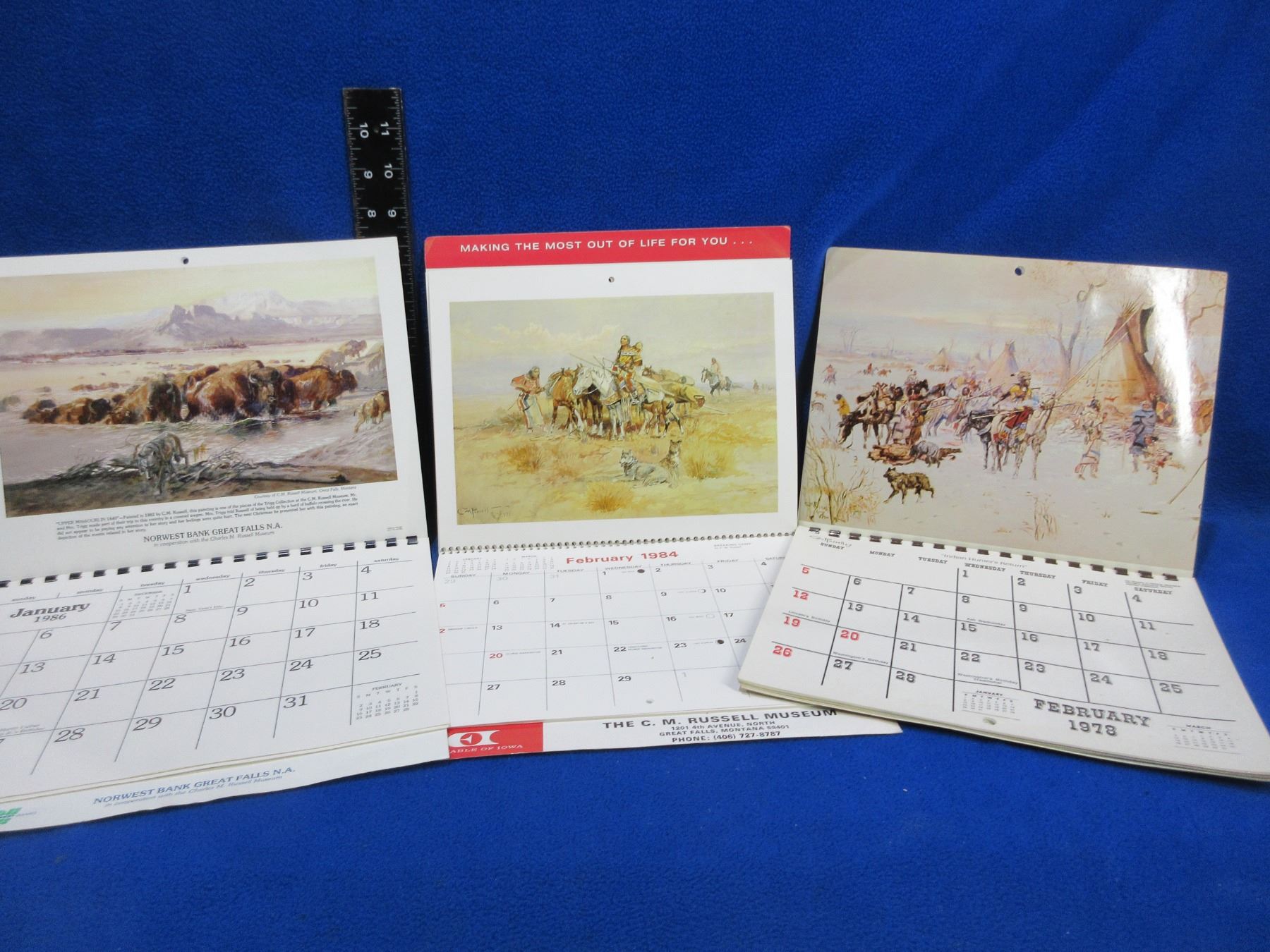 3 Charles M. Russell Calendars - 1978, 1983 and 1986 - Pictures suitable for framing