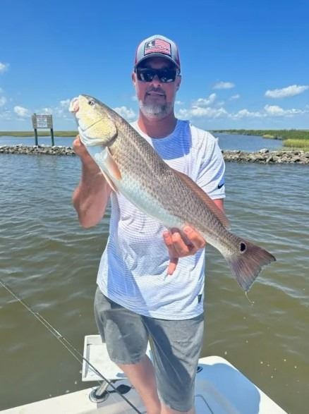 Fishing will consist of plying the marsh flats for redfish and popping the beaches and bays for speckled sea trout and a wide variety of other targeted species including: sheephead, mangrove snapper, pompano, white trout, black drum, variety of sharks, flounder and gaff top catfish, sea trout, spanish mackerel. No rough water here, just endless miles of tidal marsh canals, man made rock jetties, and beaches.
