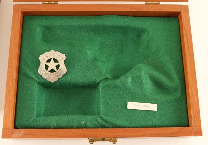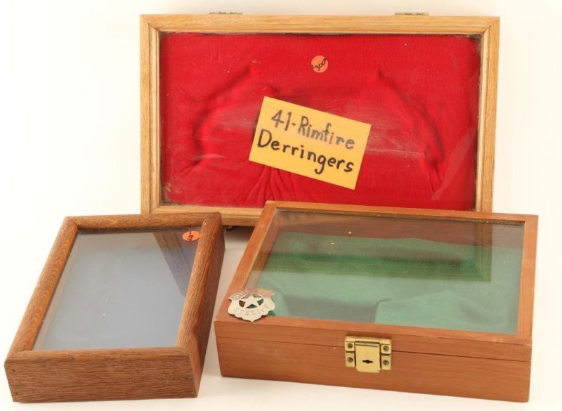 1 smaller glass top case, 1 41 Rimfire Derringer double case and 1 with Deputy Sheriff badge included.