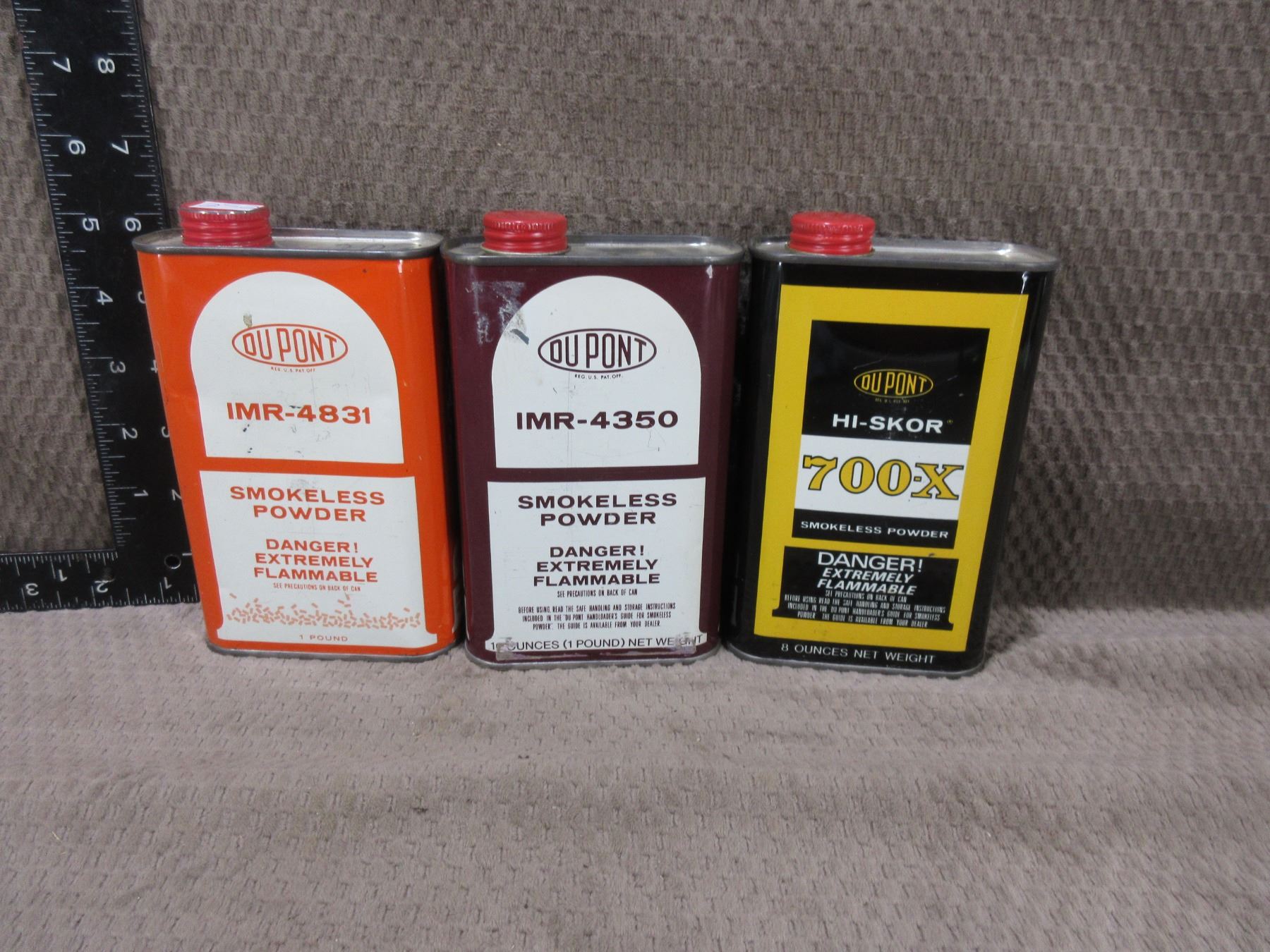 3 Empty Powder Cans - IMR 4350, IMR 4831, Hi Skor 700X