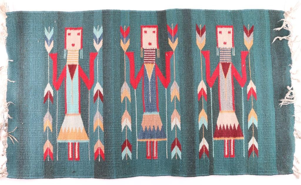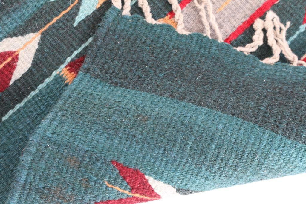 Turquoise Background With Vibrant Colors 23"x41" Good Condition The Fringe.