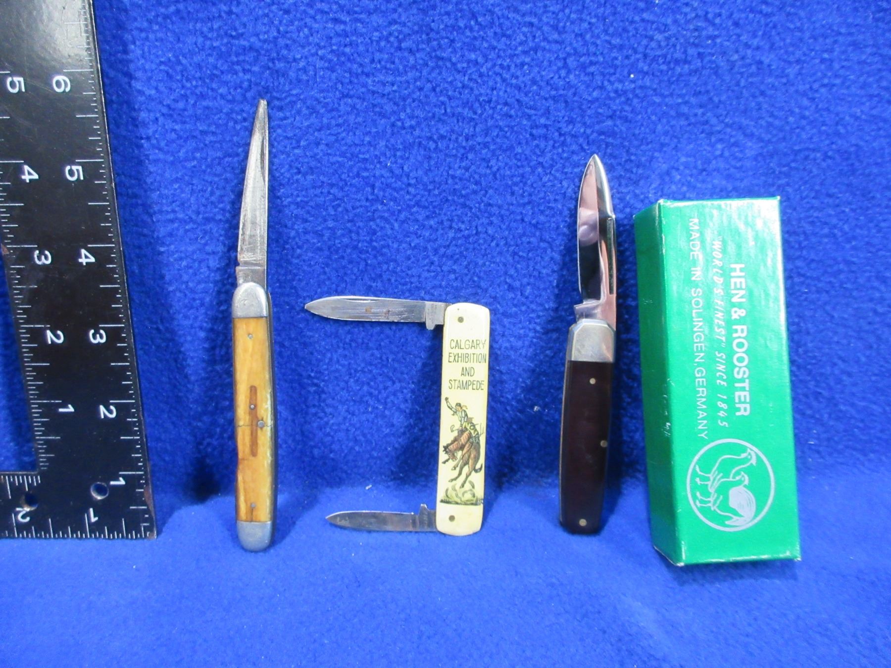 3 Folding Blade Knives - Bertram Solingen, Calgary Stampede, Unknown (Damaged)