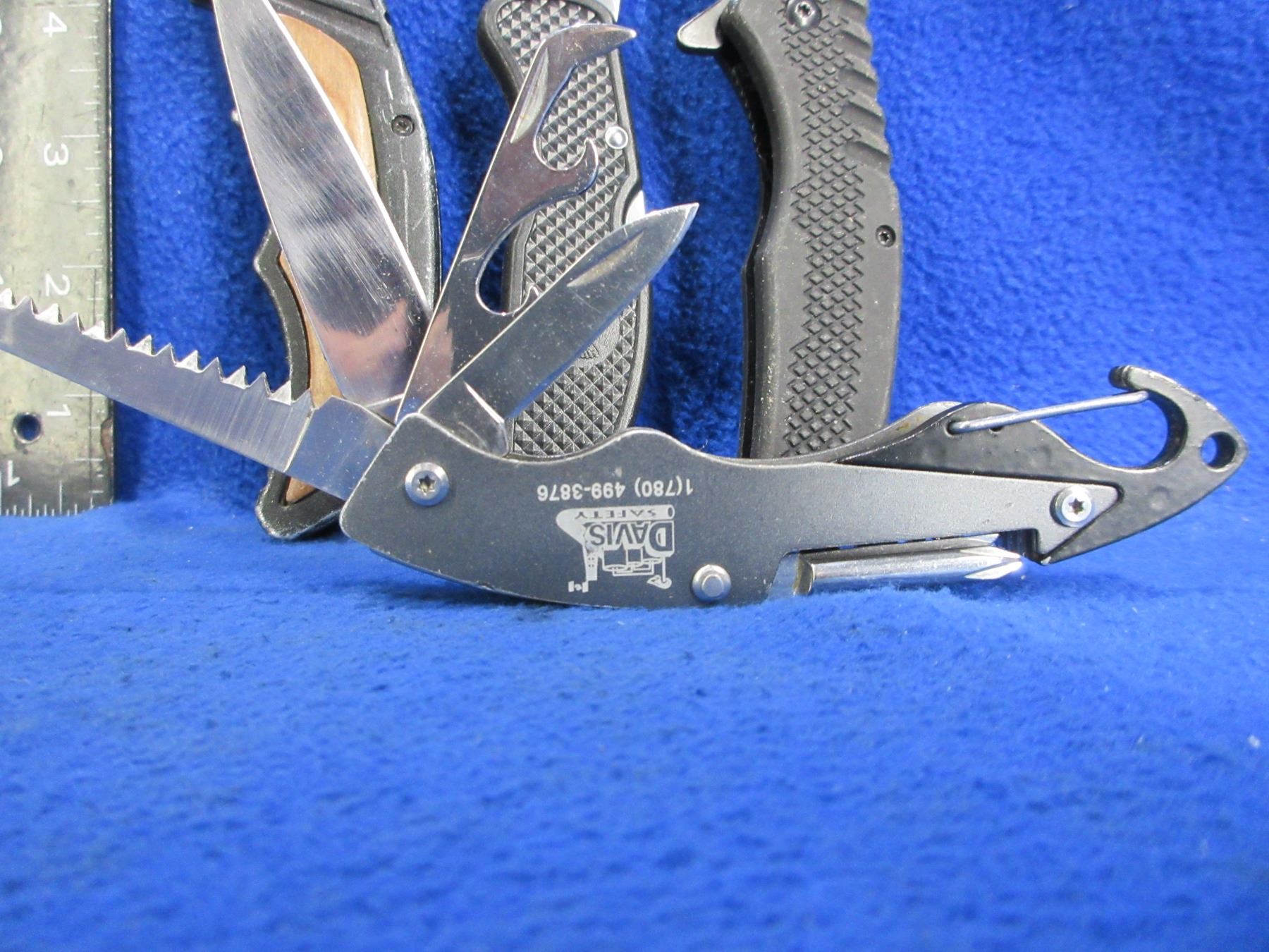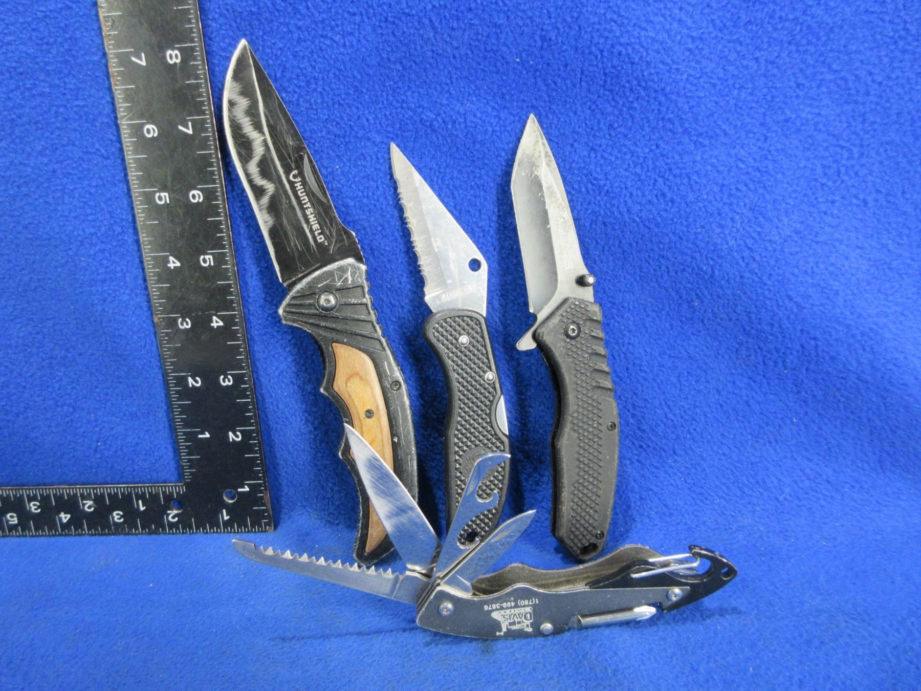 3 Folding Lock Blade Knives and a Swiss Style Knife