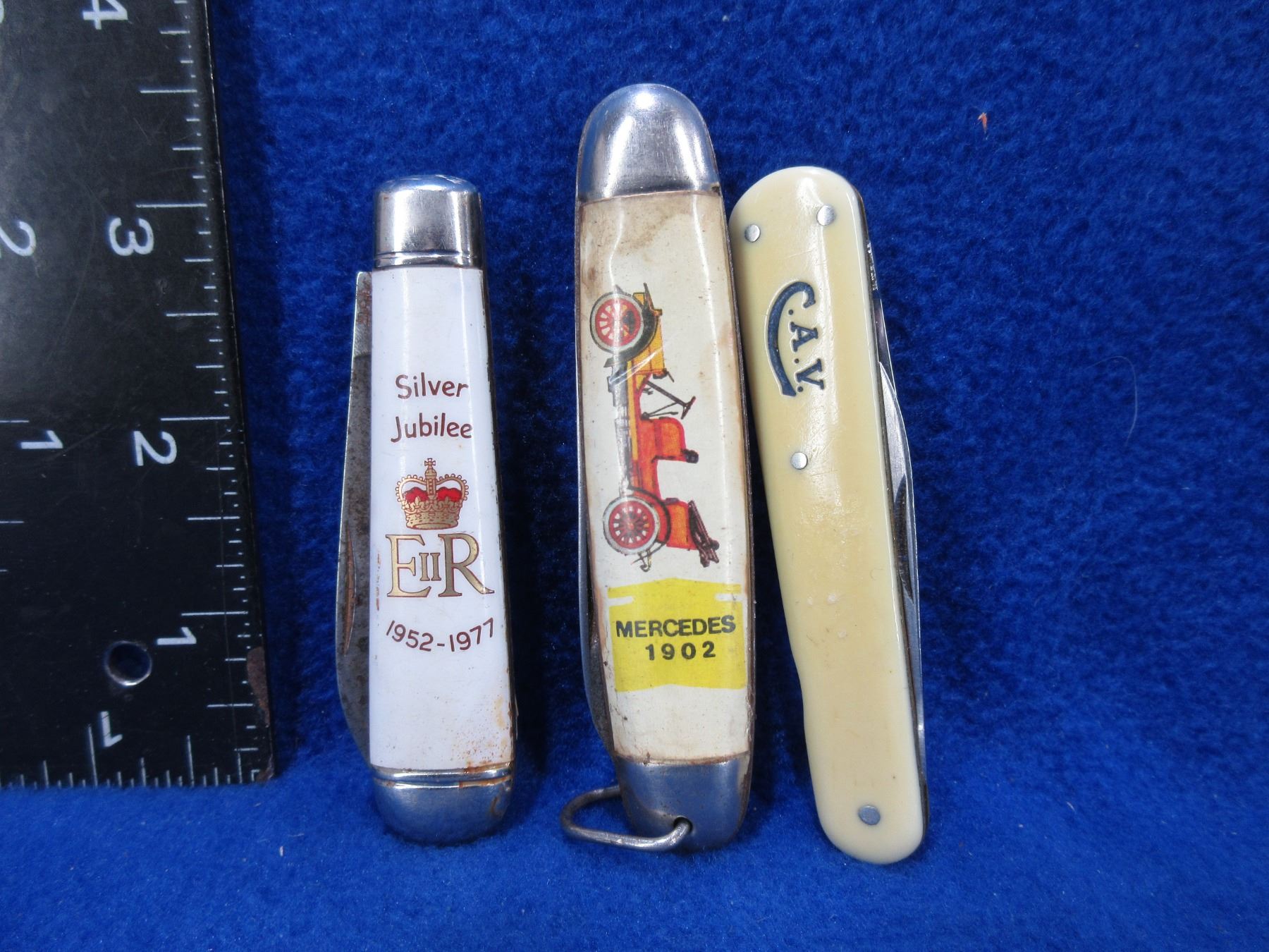 3 - Folding Pocket Knives - Mercedes 1902, Silver Jubilee 1952-77, C.A.V.