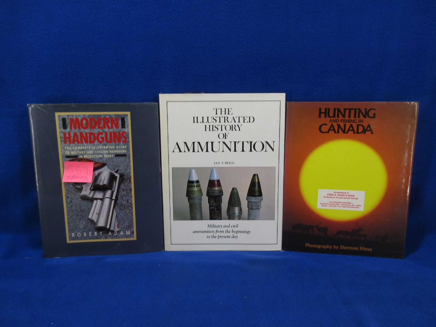 3 Gun Books - Hunting and Fishing in Canada, Modern Handguns, The Illustrated History of Ammunition