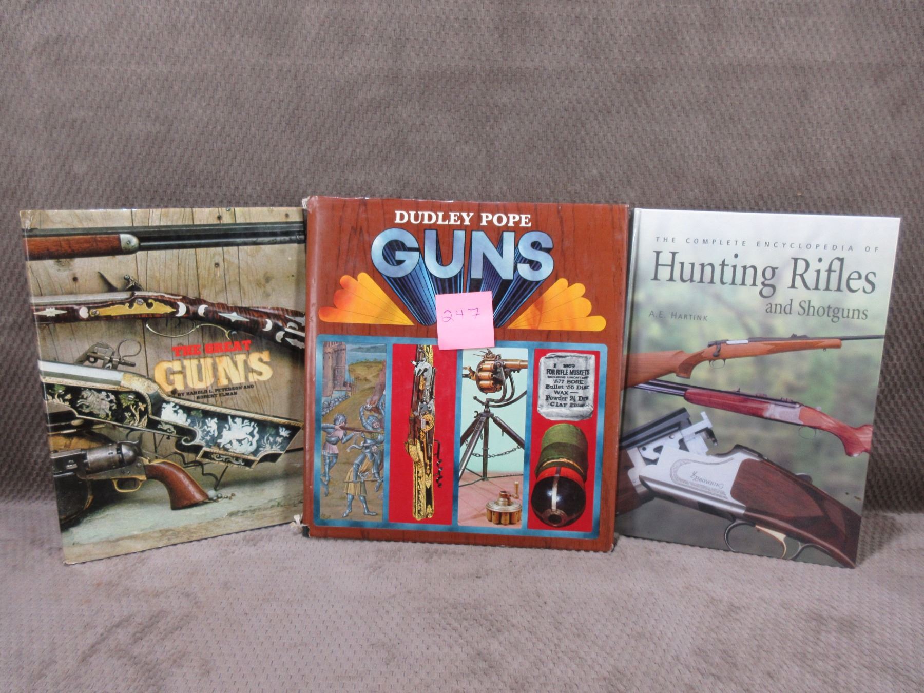 3 Gun Books - The Complete Encyclopedia of Hunting Rifles and Shotguns, The Great Guns, Guns by Dudley Pope