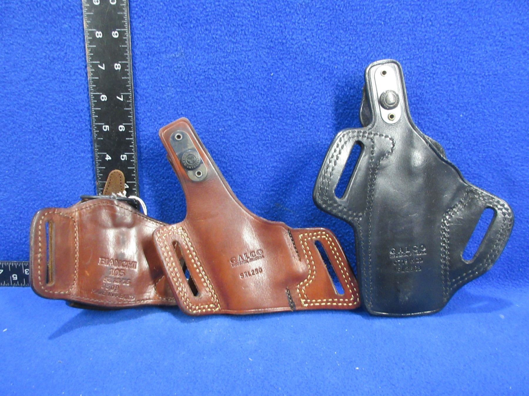 3 Leather Holsters - Galco SIL230 & C719 WCD, Bianchi 105 Size 13/15