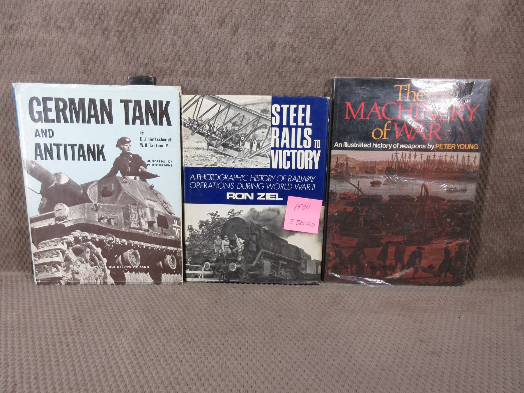 3 Military Books - Steel Rails to Victory by Ron Ziel, German Tank and Antitank by E.J.Hoffschmidt & W.H.Tantum IV, The Machinery War by Peter Young