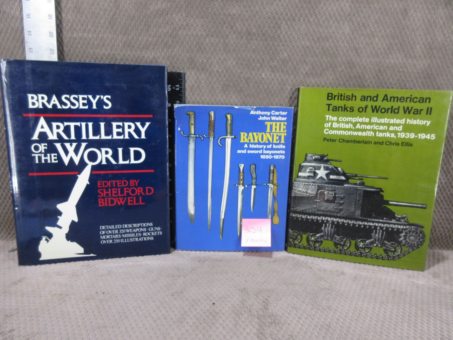 3 Military Books - The Bayonet 1850-1970, British and American Tanks of WWII, Brassey's Artillery of the World