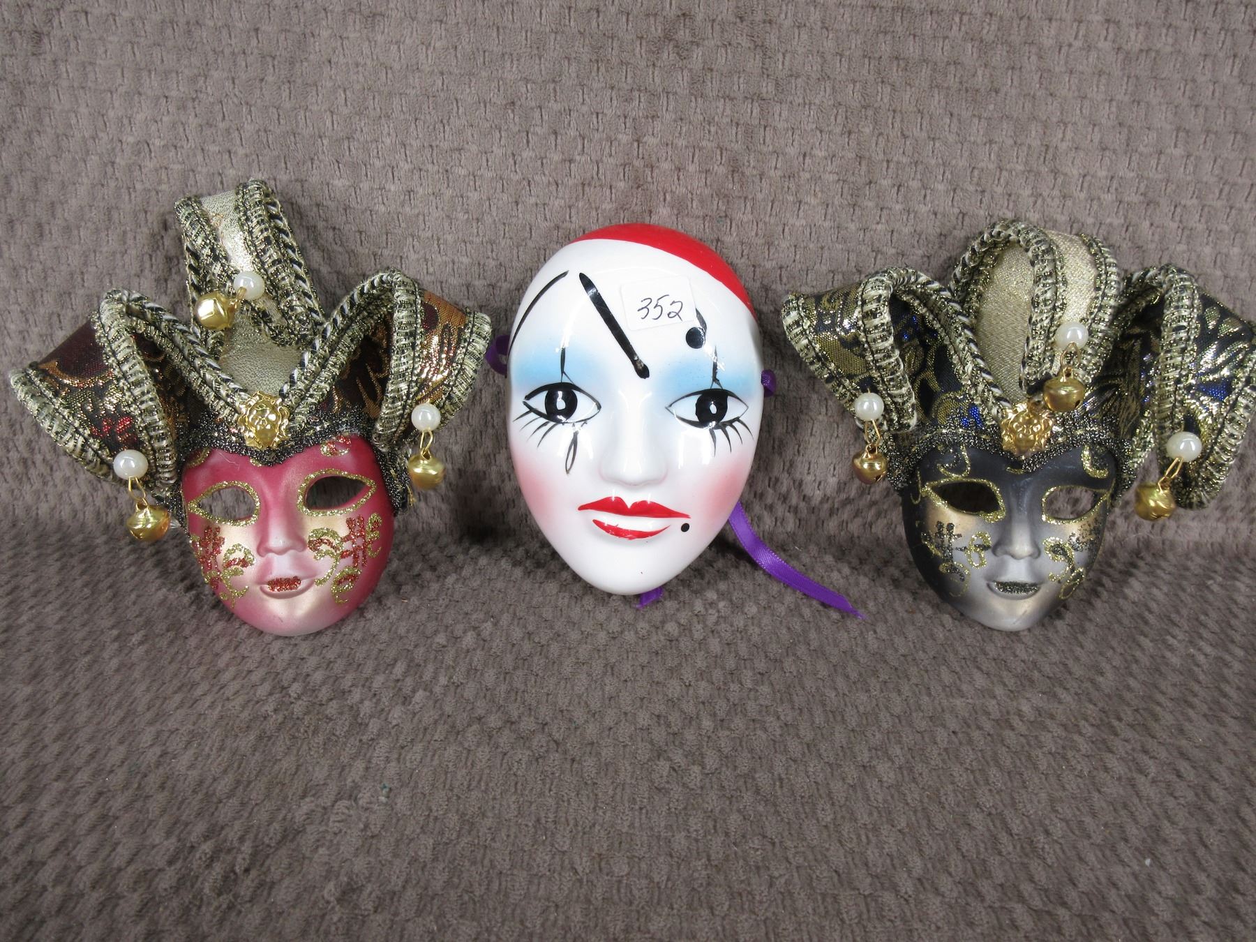 3 - Painted Face Masks, 1 Ceramic, 2 Plastic - Wall Décor - approximately 3 inches by 5 inches